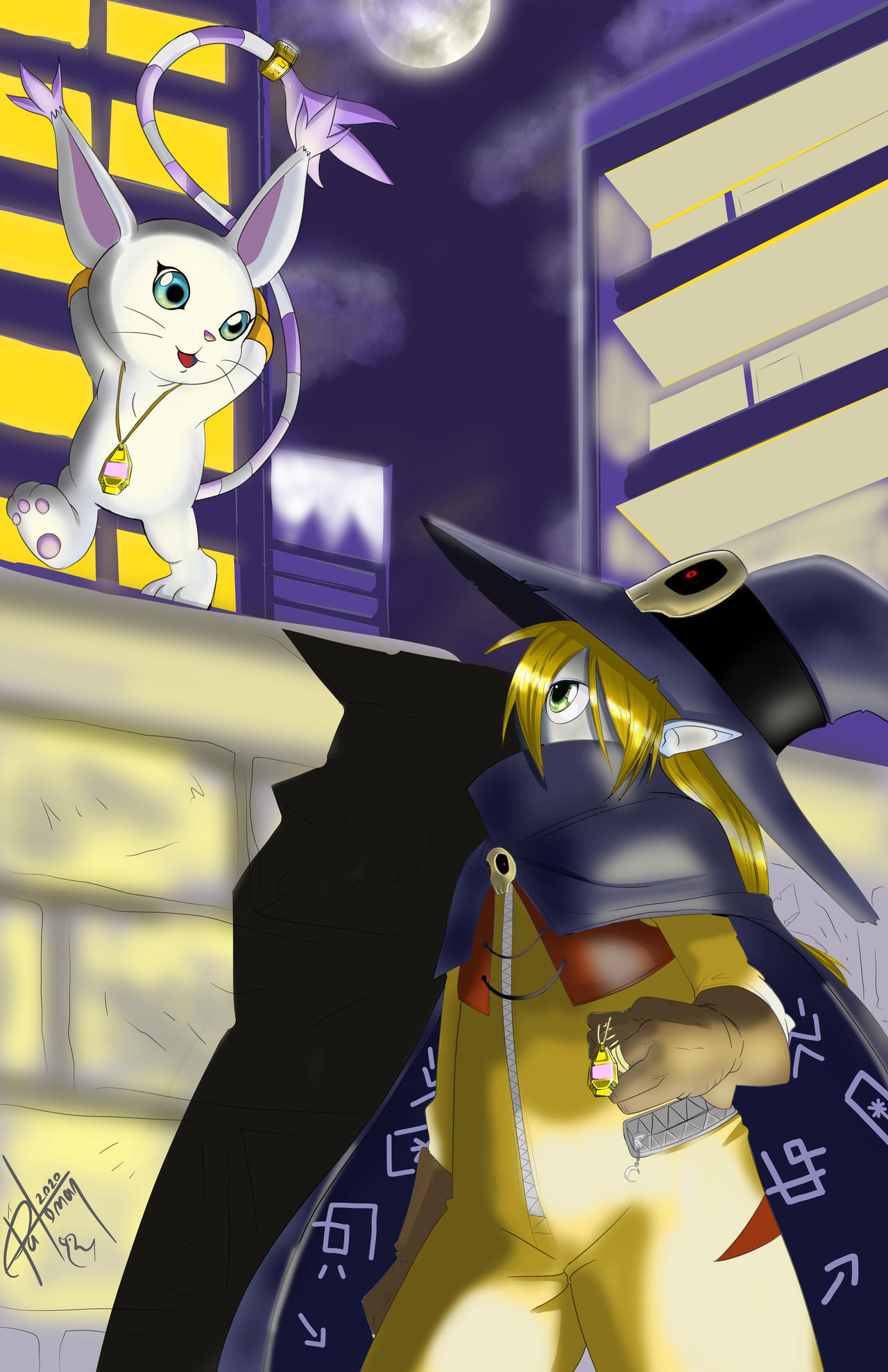 animal_ears cat cat_ears digimon digimon_(creature) gloves hat highres holy_ring skull tail tailmon wizard wizard_hat wizarmon