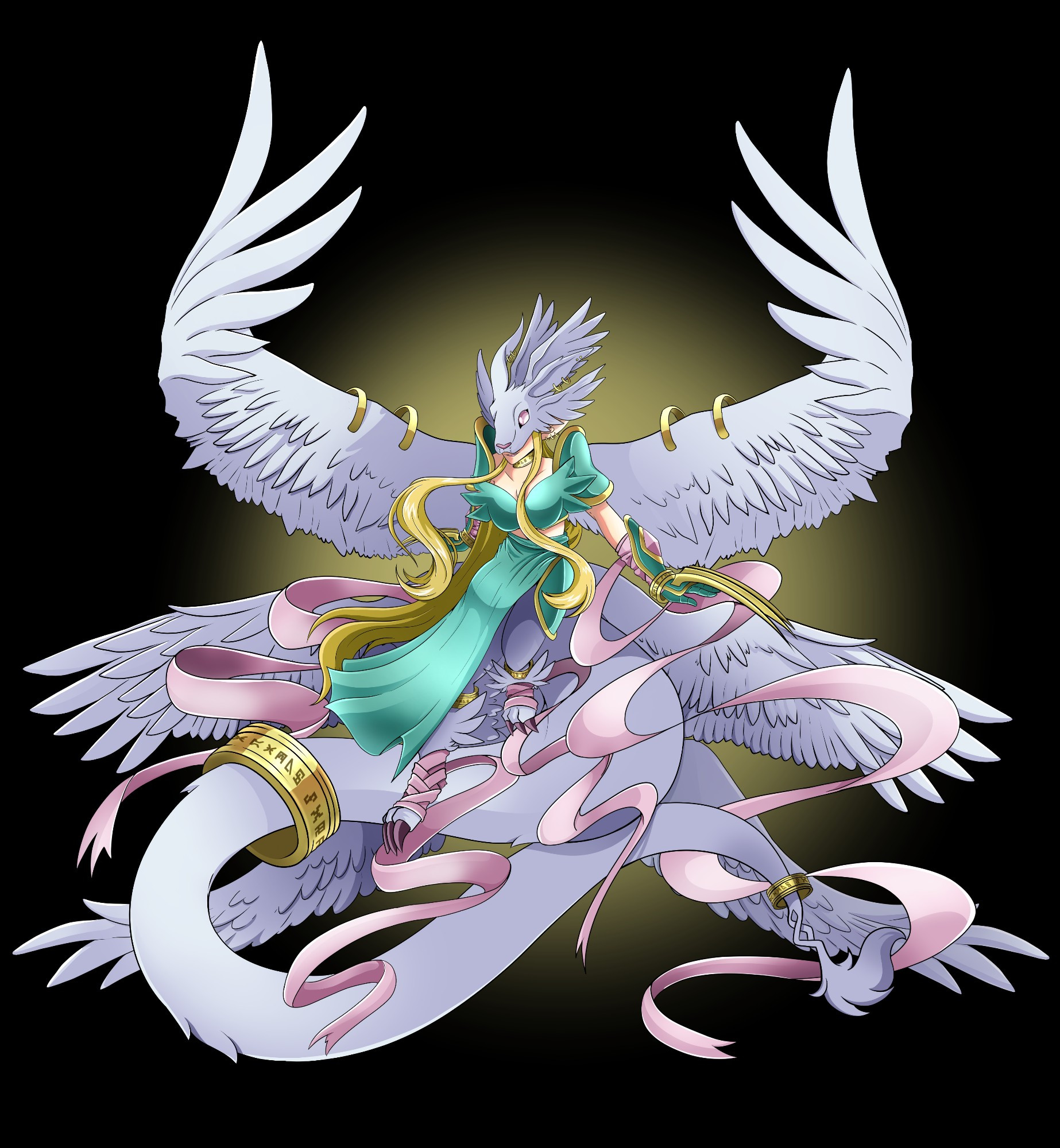 1girl digimon digimon_(creature) female_focus highres holy_ring holydramon ofanimon oridigi original solo tail