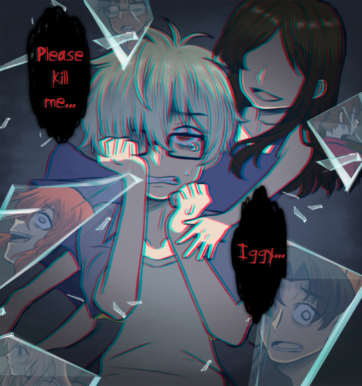 3girls 4boys animification black_hair blonde_hair broken_glass brown_hair buxley_krills chromatic_aberration crazy_smile crying crying_with_eyes_open dark-skinned_male dark_skin dress genzou_ichihara gidget_bordelle glass glass_shards glasses hat hunar_(our_wonderland) husband_and_wife iggy_maxwell long_hair mother_and_child mother_and_daughter multiple_boys multiple_girls orange_hair orlam_brewbacher our_wonderland parent_and_child ponytail red_eyes saydie_(our_wonderland) shaded_face shards short_hair smile tears white_hair ximsol182
