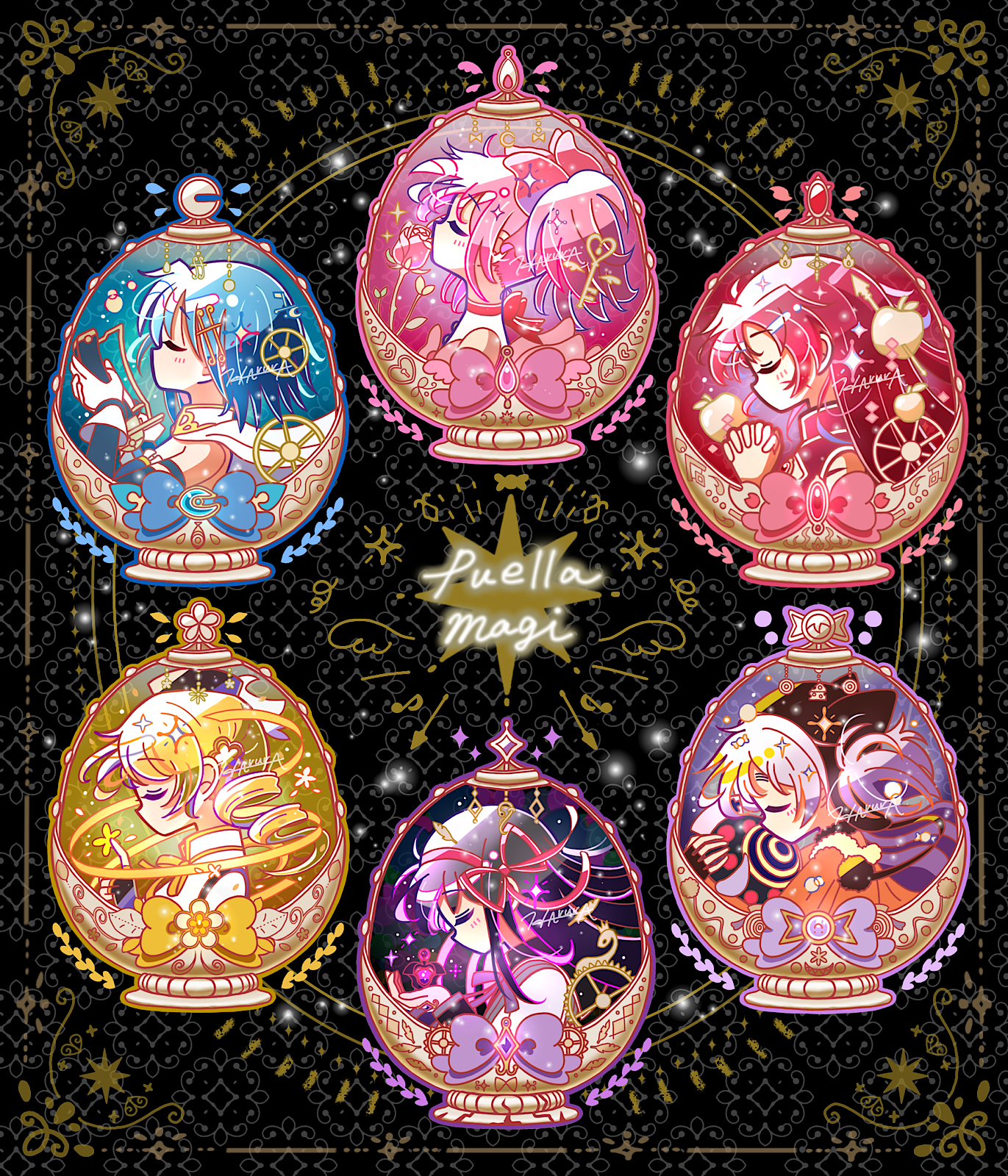 6+girls akemi_homura akemi_homura_(magical_girl) animal_ear_headwear animal_ears apple argyle_background armlet arrow_(symbol) bare_shoulders beanie beret black_background black_capelet black_gloves black_hat blonde_hair blue_bow blue_gem blue_hair blue_shirt blue_sleeves border bow bow_(weapon) bow_choker bowtie cape capelet cat_ears chest_jewel choker cleavage_cutout closed_eyes clothing_cutout collared_capelet collared_dress collared_shirt commentary_request copyright_name cropped_torso detached_sleeves dress drill_hair earflap_beanie fake_animal_ears familiar_(madoka_magica) fingerless_gloves floating_cape flower flower_hairpin food fortissimo frilled_shirt frills from_side fruit fur-trimmed_capelet fur_trim gears gem gloves hair_bow hair_down hair_ornament hair_ribbon hair_through_headwear hairband hairclip hat hat_feather high_collar highres holding holding_gem holding_sword holding_weapon interlocked_fingers jewelry kaname_madoka kaname_madoka_(magical_girl) key light_blush long_hair long_sleeves magical_girl mahou_shoujo_madoka_magica mahou_shoujo_madoka_magica:_hangyaku_no_monogatari mahou_shoujo_madoka_magica_(anime) miki_sayaka miki_sayaka_(magical_girl) momoe_nagisa momoe_nagisa_(magical_girl) multiple_girls musical_note musical_note_hair_ornament no_mouth orange_capelet ornate_border own_hands_clasped own_hands_together pink_bow pink_flower pink_gem pink_hair pink_rose pointy_nose pom_pom_(clothes) praying purple_bow purple_bowtie purple_capelet purple_gem pyotr_(madoka_magica) red_bow red_choker red_dress red_gem red_hair red_hairband red_ribbon ribbon rose sakura_kyoko sakura_kyoko_(magical_girl) shirt short_hair short_twintails sleeveless sleeveless_dress soul_gem sparkle strapless strapless_shirt sword tomoe_mami tomoe_mami_(magical_girl) twin_drills twintails two-tone_capelet two_side_up weapon wheel white_cape white_dress white_gloves white_hair white_shirt yae_harura yellow_bow yellow_bowtie yellow_flower yellow_gem yellow_ribbon