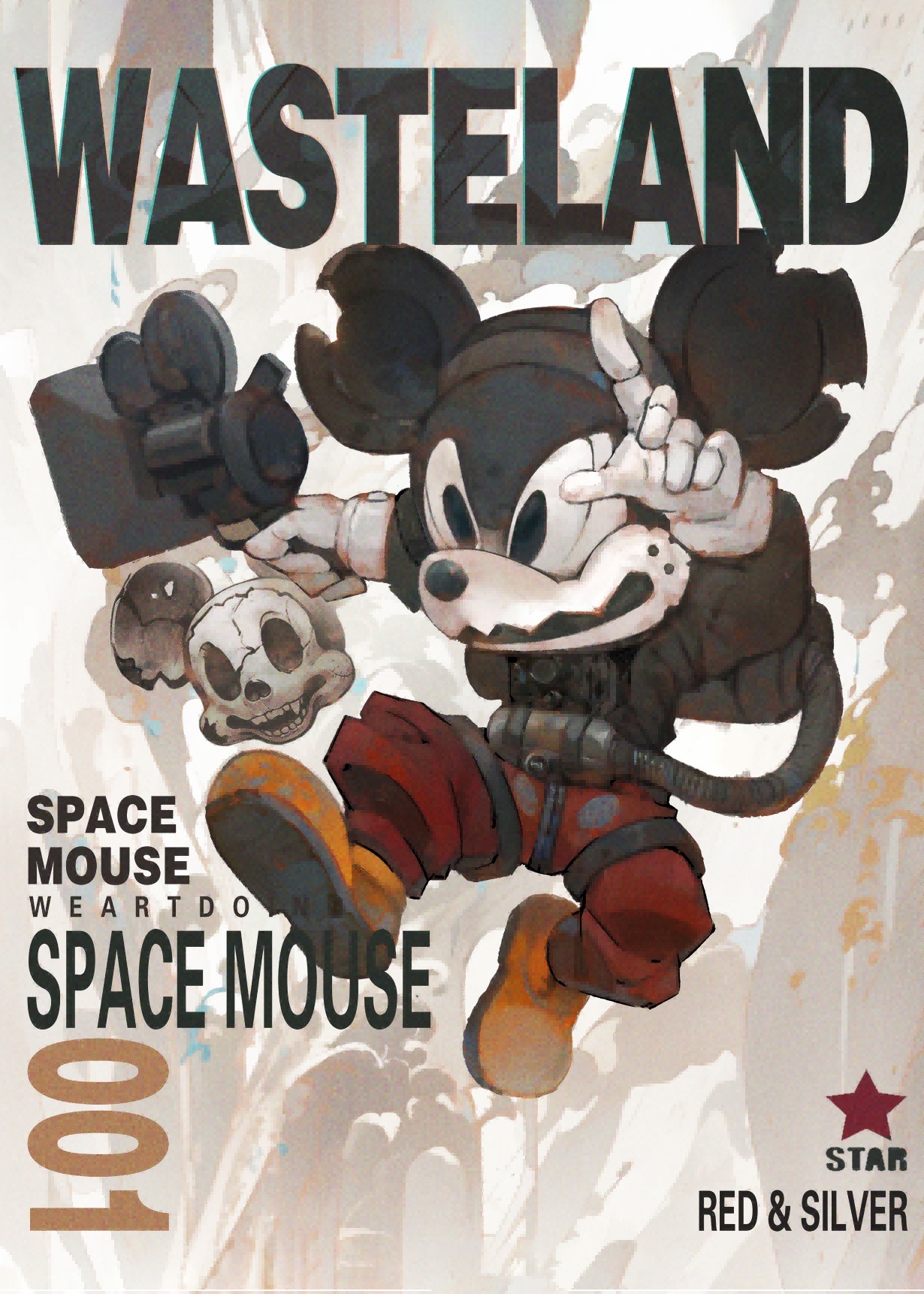animal animal_skull backpack bag black_eyes buttons cable camera clothed_animal disney english_text gloves highres holding holding_camera jumping looking_ahead mickey_mouse mickey_mouse_&_friends mouse_(animal) no_humans numbered open_mouth pants red_pants sharp_teeth shoes snout solid_oval_eyes star_(symbol) teeth upper_teeth_only weartdoing whiskers white_background white_gloves yellow_shoes