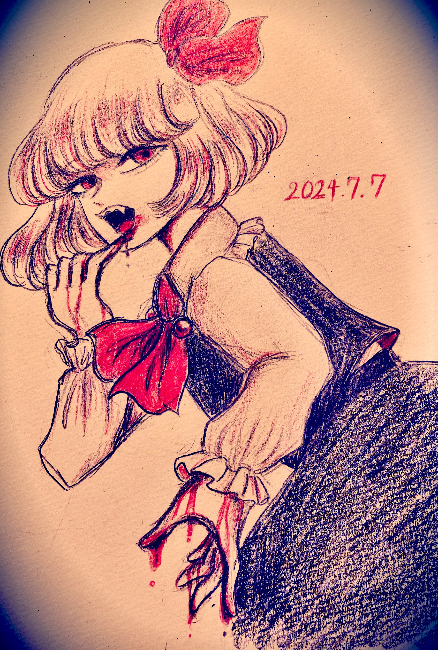 1girl absurdres blood blood_on_hands highres looking_at_viewer medium_hair neri_namgal rumia solo