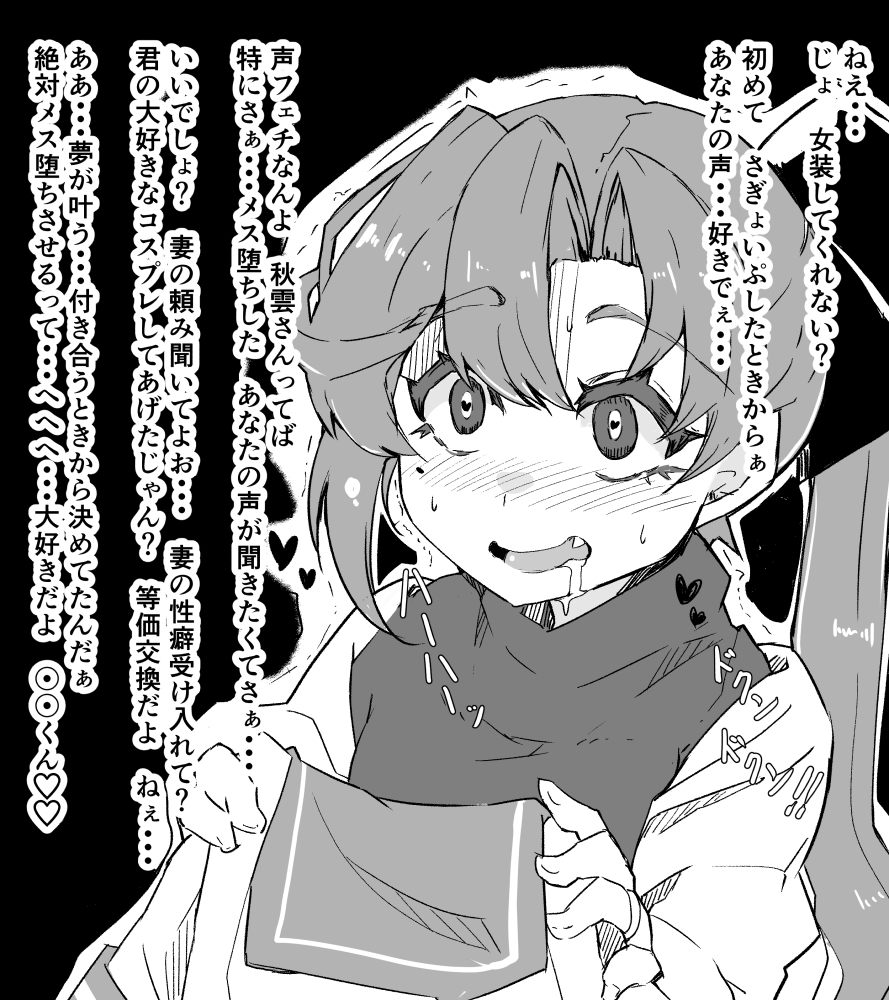 1girl akigumo_(kancolle) commentary_request drooling greyscale hair_ribbon holding holding_shirt holding_unworn_clothes jacket kantai_collection kodachi_(kuroyuri_shoukougun) monochrome ponytail ribbon sailor_collar sailor_shirt shirt solo sweater translation_request unworn_shirt upper_body
