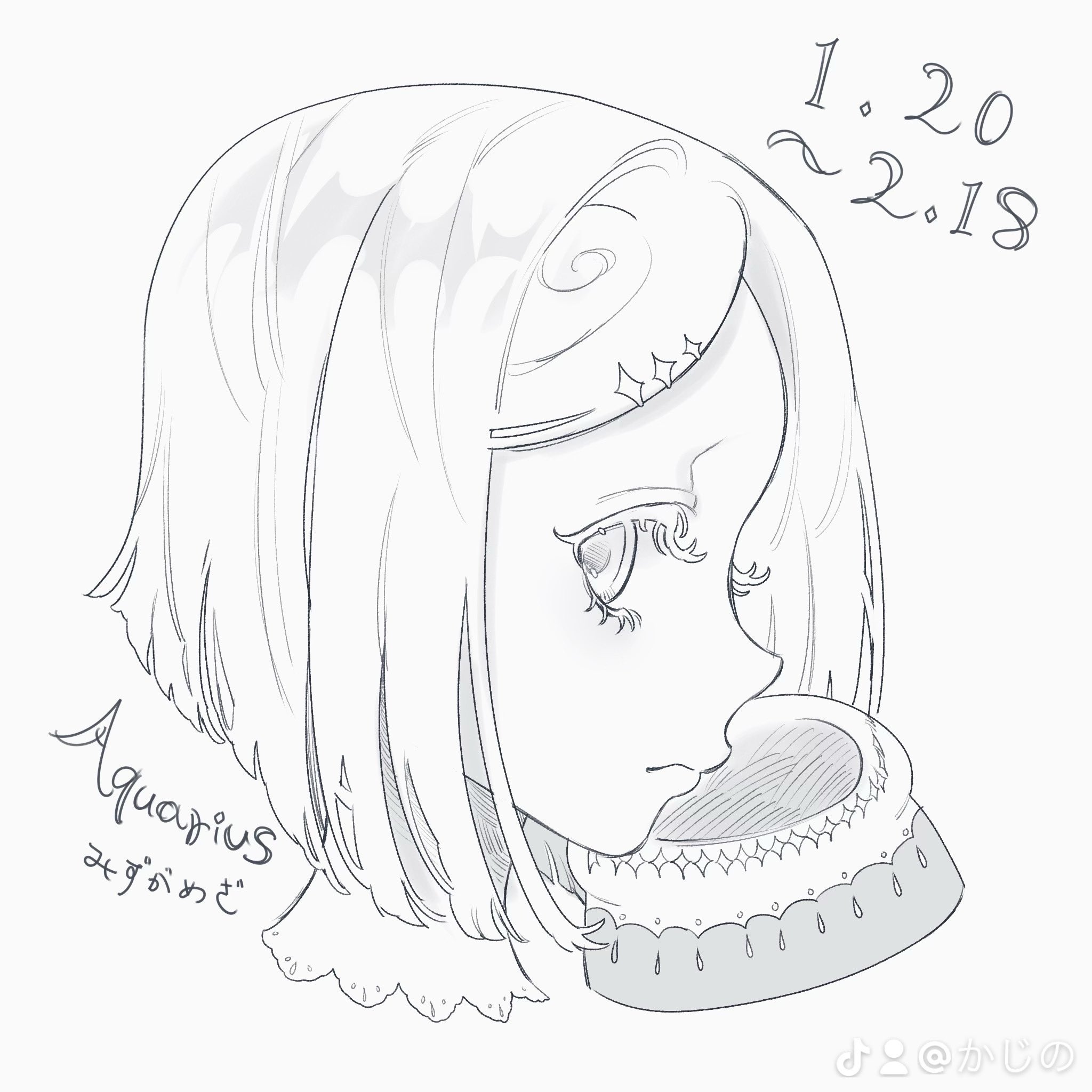 1girl commentary greyscale highres kajino looking_at_viewer monochrome original personification portrait short_hair simple_background solo white_background zodiac