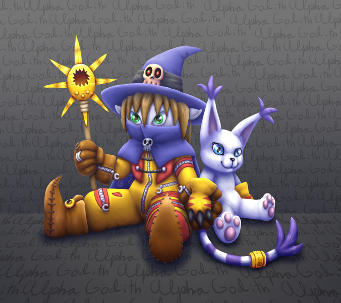 animal_ears cat cat_ears digimon digimon_(creature) gloves hat holy_ring skull tail tailmon wizard wizard_hat wizarmon