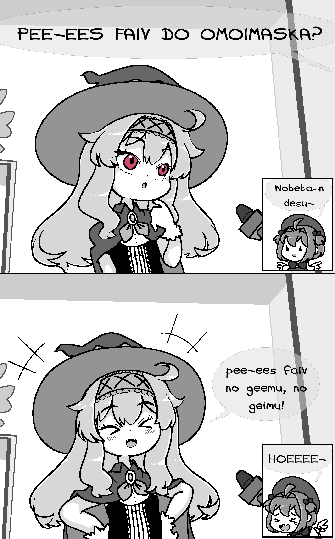 artist_request cardcaptor_sakura comic game_console highres kinomoto_sakura laughing little_witch_nobeta microphone monochrome nobeta playstation_5