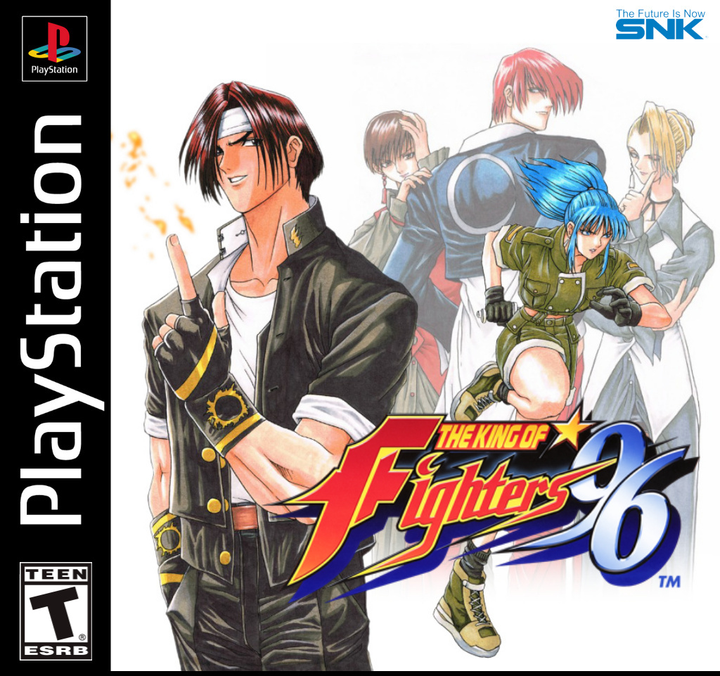 1990s_(style) 2boys 3girls blonde_hair blue_hair brown_hair cover kusanagi_kyou leaning_on_person leona_heidern looking_back mature_(kof) multiple_boys multiple_girls navel red_hair retro_artstyle running snk tani_takeshi the_king_of_fighters vice_(kof) yagami_iori