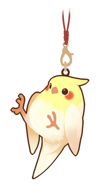 animal_charm animal_focus beads bird black_eyes blush_stickers charm_(object) cockatiel commentary_request era_(traveling_bird) looking_ahead no_humans original simple_background solid_circle_eyes white_background