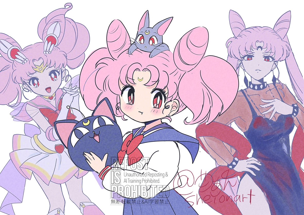 bishoujo_senshi_sailor_moon black_lady_(sailor_moon) chibi_usa cone_hair_bun crescent crescent_facial_mark facial_mark hair_bun juuban_elementary_school_uniform pink_sailor_collar sailor_chibi_moon sailor_collar sailor_senshi sailor_senshi_uniform sheyona super_sailor_chibi_moon
