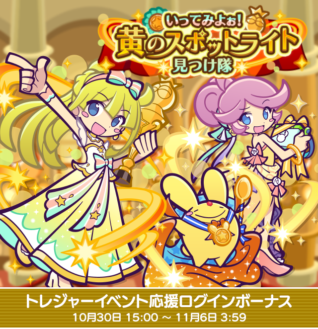 2girls ahoge alternate_hairstyle bare_shoulders blonde_hair blue_eyes blush_stickers bow box bracelet carbuncle_(puyopuyo) check_translation dress hair_bow high_heels holding holding_box holding_trophy jewelry long_dress long_hair looking_at_viewer madou_monogatari medal multiple_girls official_art open_mouth pink_hair pink_shoes pleated_dress pointing puyopuyo puyopuyo_fever puyopuyo_quest raffina_(puyopuyo) shoes smile sparkle spoon star_(symbol) striped_bow translation_request trophy witch_(puyopuyo) yellow_dress yellow_shoes