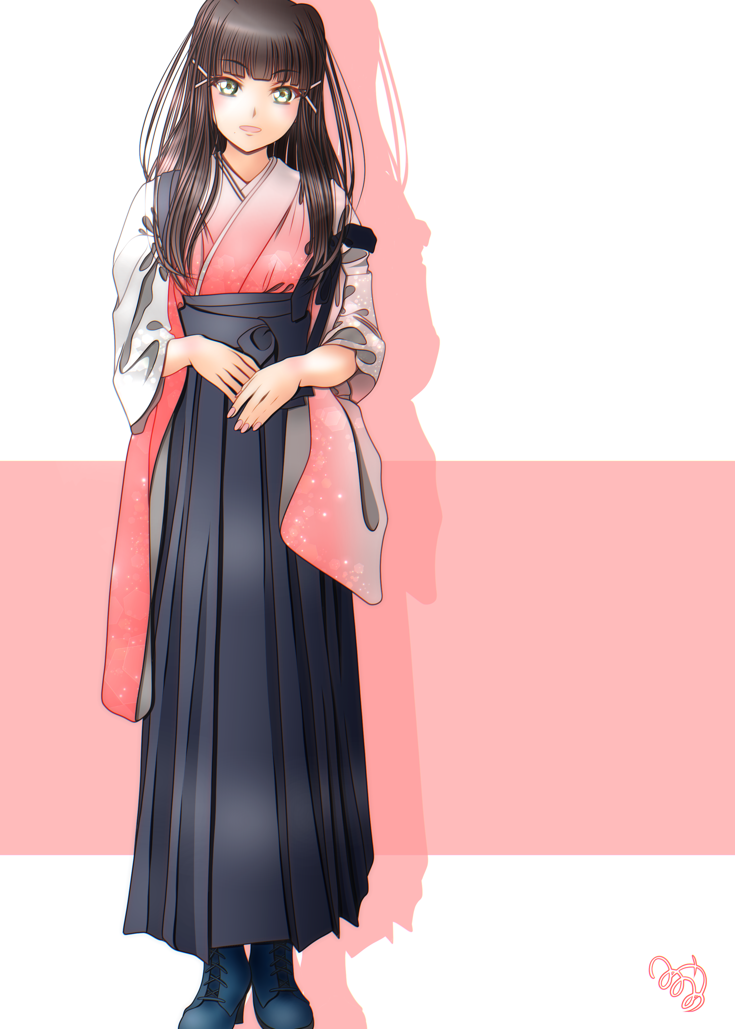 1girl absurdres aqua_eyes black_dress brown_hair dress hair_ornament hairclip highres kurosawa_dia long_hair long_sleeves love_live! love_live!_sunshine!! minami_saan open_mouth smile solo standing