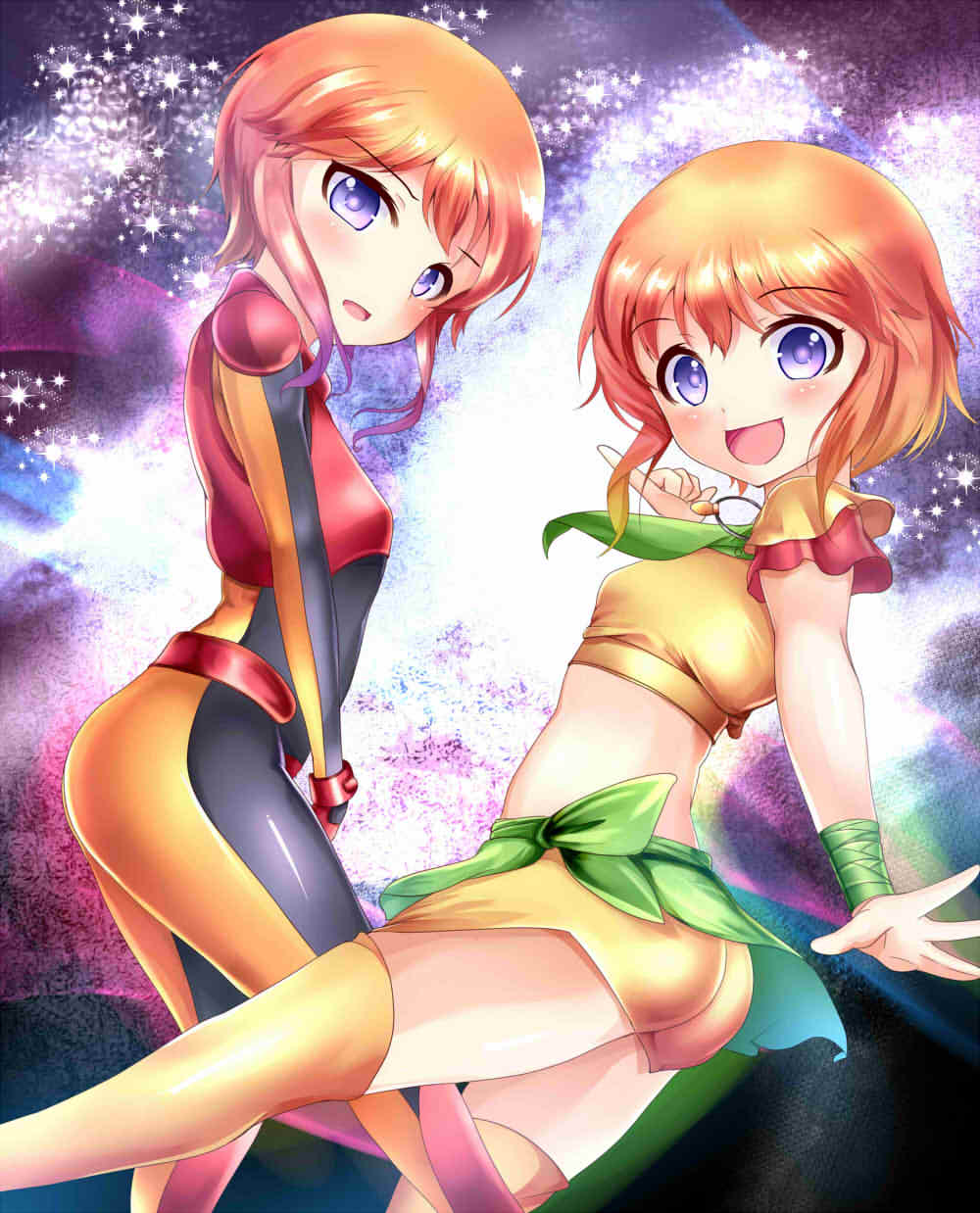 2girls aru_(arudes) blue_eyes bodysuit child elpeo_puru garrison_cap gundam gundam_zz hat highres multiple_girls orange_hair puru_two