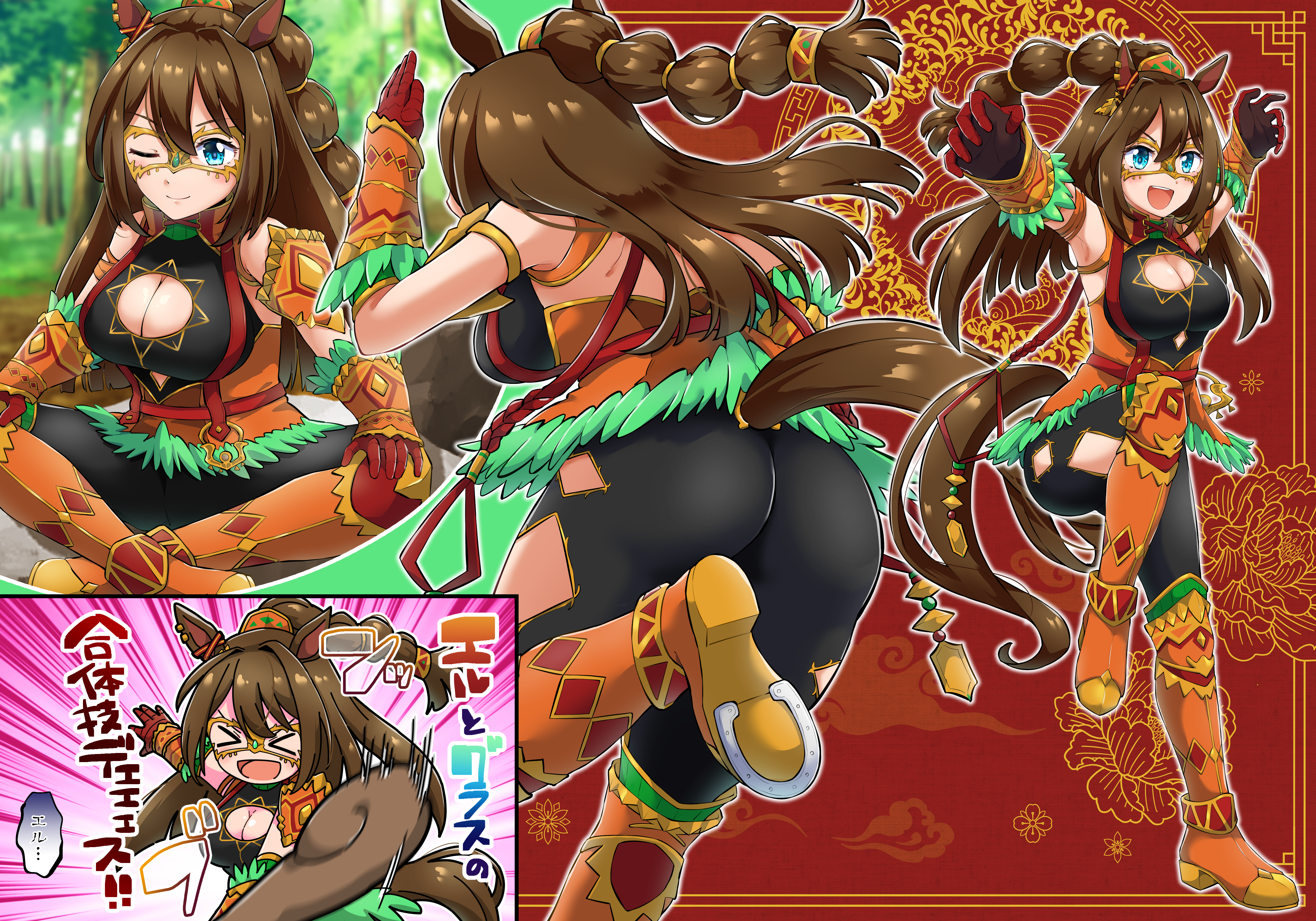 absurdres animal_ears boots el_condor_pasa_(kukulkan_warrior)_(umamusume) el_condor_pasa_(kukulkan_warrior)_(umamusume) el_condor_pasa_(umamusume) highres horse_ears horse_tail kukulkan_monk masked mesuga_suki orange_boots tail umamusume yellow_mask