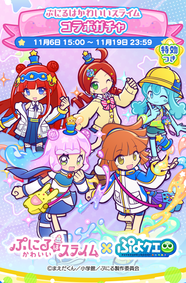5girls ahoge andou_ringo arle_nadja armor backpack bag bare_shoulders bike_shorts blue_bag blue_cape blue_eyes blue_footwear blue_hair blue_hat blue_jacket blue_ribbon blue_shorts blue_skin blue_skirt blue_thighhighs blunt_bangs blush blush_stickers boots bow bowtie breastplate cape cardigan character_charm character_hair_ornament charm_(object) check_translation clenched_hand collared_shirt colored_skin copyright_name cosplay costume_switch crime_prevention_buzzer crossover denim denim_shorts detached_sleeves double_bun drill_hair earrings facial_mark gradient_hair green_eyes green_shirt gyaru hair_between_eyes hair_bun hair_ornament hairband hat index_finger_raised jacket jewelry long_hair long_sidelocks long_sleeves looking_at_viewer loose_bowtie loose_socks mini_hat mini_top_hat miyabi_(puyopuyo) monster_girl multicolored_hair multicolored_jacket multiple_girls neck_ribbon off-shoulder_jacket off_shoulder official_alternate_costume official_art one_eye_closed open_mouth orange_hair outstretched_arm pauldrons pink_hair pleated_skirt pointy_ears ponytail puniru_(puniru_wa_kawaii_slime) puniru_wa_kawaii_slime purple_footwear puyopuyo puyopuyo_quest randoseru red_bow red_bowtie red_hair ribbon school_hat shirt shoes short_hair_with_long_locks shorts shoulder_armor shoulder_bag sidelocks skirt sleeves_past_wrists slime_(substance) slime_girl smile sneakers socks sparkle star_(symbol) striped_bow striped_bowtie striped_clothes sweater t-shirt thighhighs top_hat translation_request twin_drills two-tone_hair two-tone_jacket undine_(puyopuyo) white_jacket white_shirt white_socks yellow_eyes yellow_hat yellow_shoes