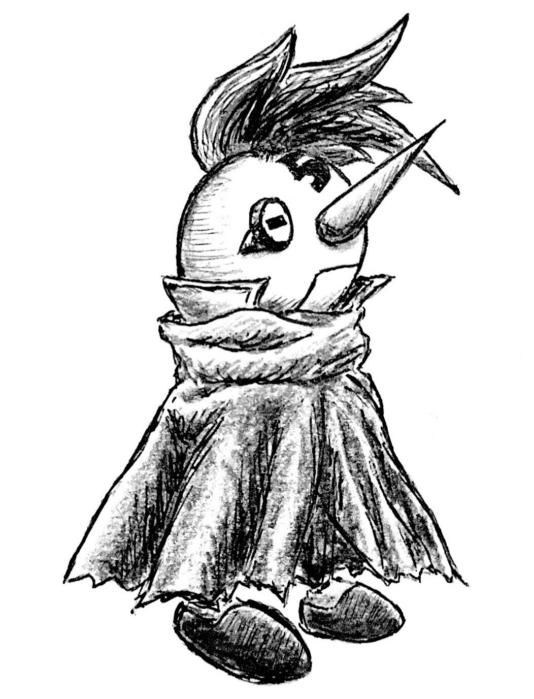 cape digimon digimon_(creature) digimon_legendary_skies highres kuileimon looking_up pointy_nose puppet standing white_background