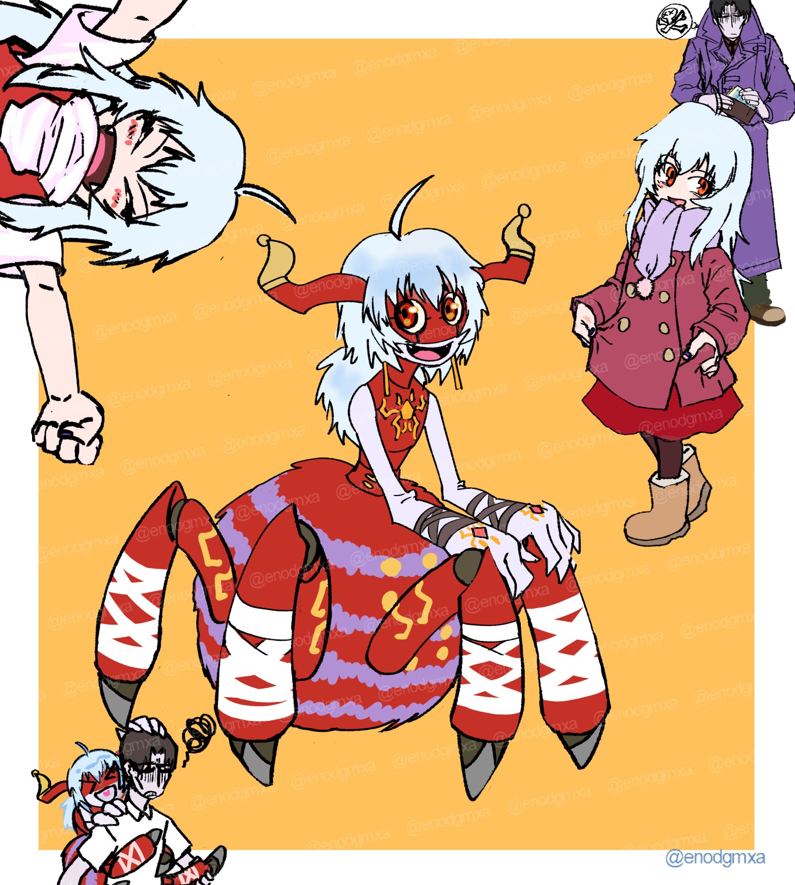 archnemon arthropod_girl digimon digimon_(creature) digimon_adventure_02 highres horns insect_girl long_hair mask monster_girl oikawa_yukio spider_girl