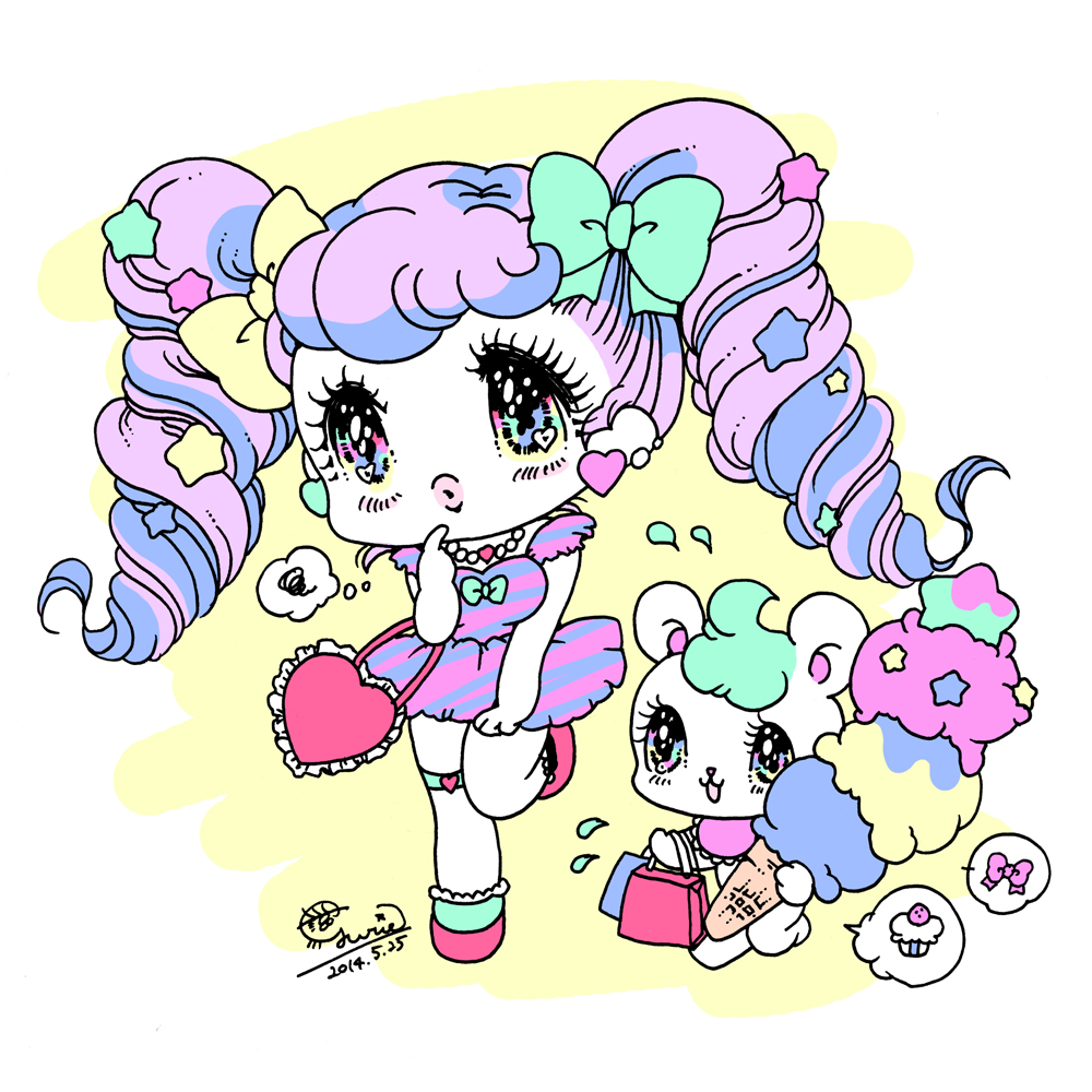bag bib bow chibi chibi_only colored_skin cupcake curly_hair decora dress drill_hair earrings eyelashes fairy_kei food frilled_socks frills hair_bow hair_ornament handbag heart heart_earrings heart_in_eye heart_necklace ice_cream ice_cream_cone jewelry mismatched_earrings multicolored_eyes multiple_hair_bows necklace original purple_hair rainbow_eyes sekiya_yurie shoes socks star_(symbol) star_hair_ornament striped_clothes striped_dress symbol_in_eye thick_lips twin_drills twintails white_skin yume_kawaii
