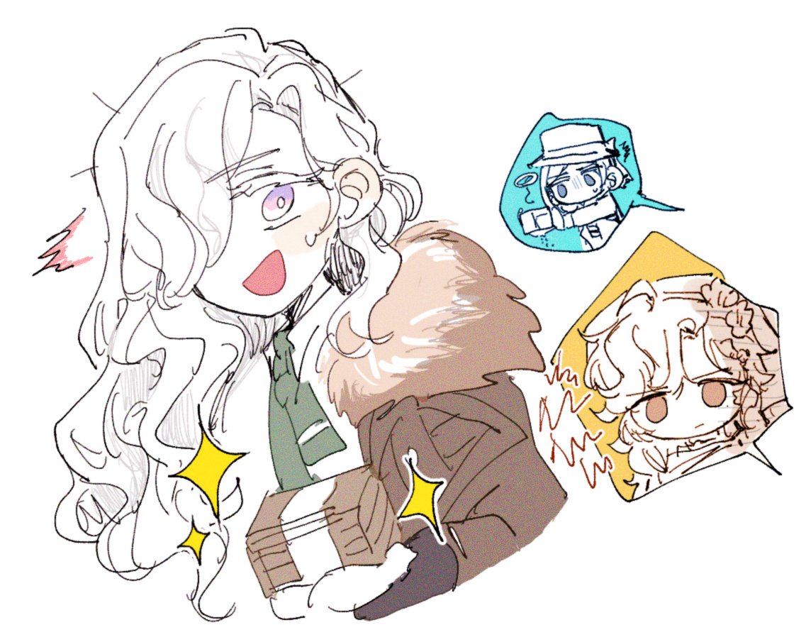 3girls :/ ^^^ angry banknote brown_coat coat curly_hair fur-trimmed_coat fur_trim green_necktie hair_over_one_eye holding holding_money holding_wallet kim_8thhh long_hair looking_at_viewer money multiple_girls necktie open_mouth purple_eyes reverse:1999 shirt shout_lines solo_focus speech_bubble spoken_character sweat upper_body vertin_(reverse:1999) vila_(reverse:1999) wallet white_background white_hair white_shirt windsong_(reverse:1999)