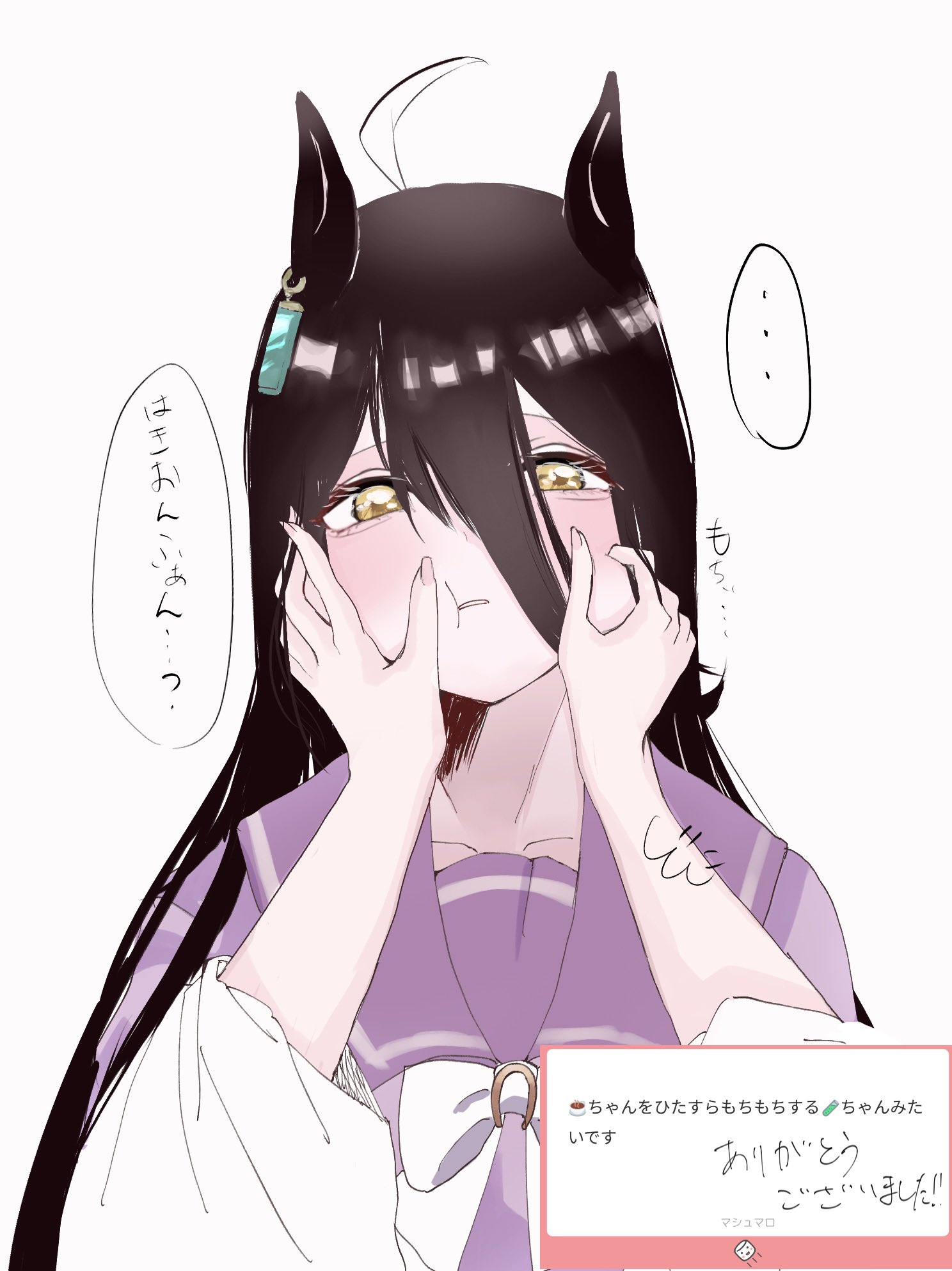 ... 2girls :t agnes_tachyon_(umamusume) ahoge amo_(silent_bomb19) animal_ears black_hair bow bowtie cheek_squash ear_tag earrings hair_between_eyes hand_on_another's_face highres horse_ears horse_girl jewelry lab_coat long_bangs long_hair long_hair_between_eyes long_sleeves looking_at_viewer manhattan_cafe_(umamusume) multicolored_hair multiple_girls pov purple_sailor_collar sailor_collar school_uniform single_earring solo_focus speech_bubble spoken_ellipsis tccf41335 tracen_school_uniform translation_request umamusume very_long_hair white_background white_bow white_bowtie white_hair yellow_eyes