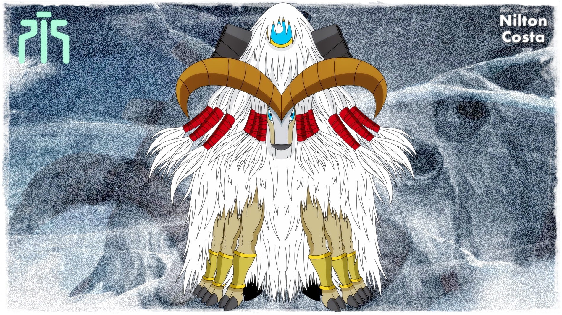ancientmegatheriumon blue_eyes digimon digimon_(creature) digimon_frontier highres horns looking_at_viewer nilton_costa solo ten_legendary_warriors
