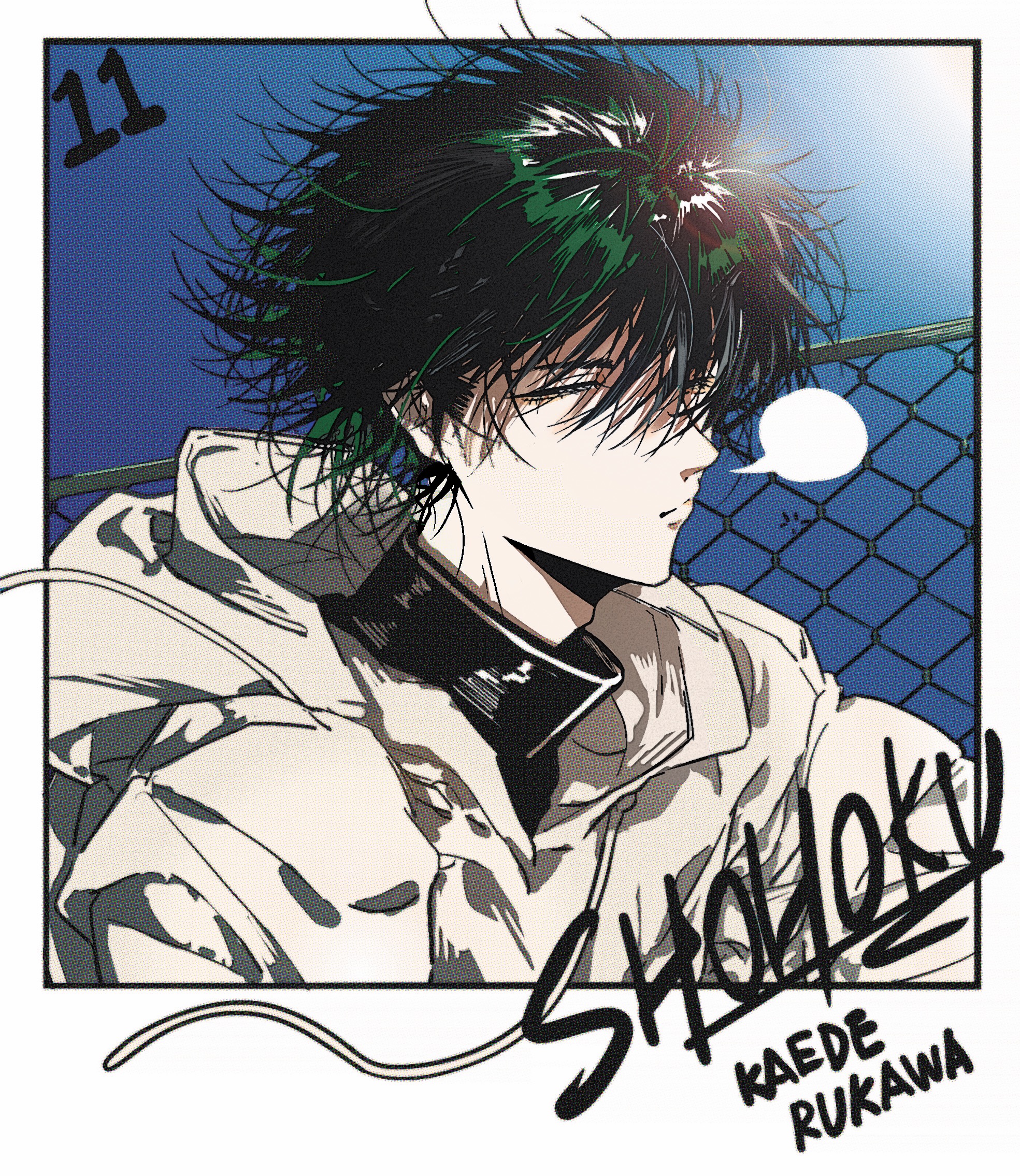 1boy black_shirt blue_sky border chain-link_fence character_name chinese_commentary closed_eyes closed_mouth collared_shirt commentary_request day eyelashes fence green_hair highres hood hood_down hoodie light_frown lips male_focus nose_bubble outdoors point3q rukawa_kaede shirt short_hair sky slam_dunk_(series) sleeping solo squeans sunlight upper_body white_border white_hoodie