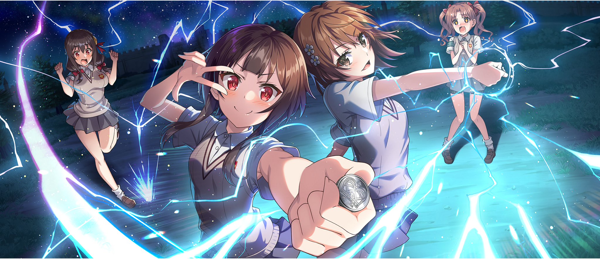 +_+ 4girls armband bow braid breasts brown_eyes brown_footwear brown_hair brown_sweater_vest coin collared_shirt cosplay crossover crown_braid electricity electrokinesis game_cg green_armband grey_skirt hair_bow hair_ornament hairpin highres holding holding_coin kono_subarashii_sekai_ni_shukufuku_wo! konosuba!_fantastic_days large_breasts light_brown_hair loafers long_hair loose_socks matching_outfits medium_hair megumin miniskirt misaka_mikoto misaka_mikoto_(cosplay) multiple_girls night official_art outdoors outstretched_arm pleated_skirt railgun_(misaka_mikoto) red_bow red_eyes school_emblem school_uniform shirai_kuroko shirai_kuroko_(cosplay) shirt shoes short_hair short_hair_with_long_locks short_sleeves sidelocks skirt sky small_breasts smile smug socks standing standing_on_one_leg star_(sky) starry_sky_background summer_uniform sweater_vest toaru_kagaku_no_railgun toaru_majutsu_no_index tokiwadai_school_uniform twintails w w_over_eye wavy_hair white_socks yunyun_(konosuba)