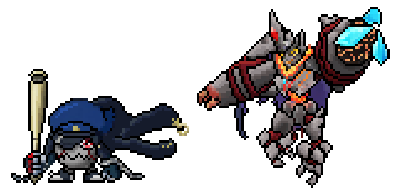 banchogolemon banchomamemon claws coat coat_on_shoulders digimon digimon_(creature) hat red_eyes