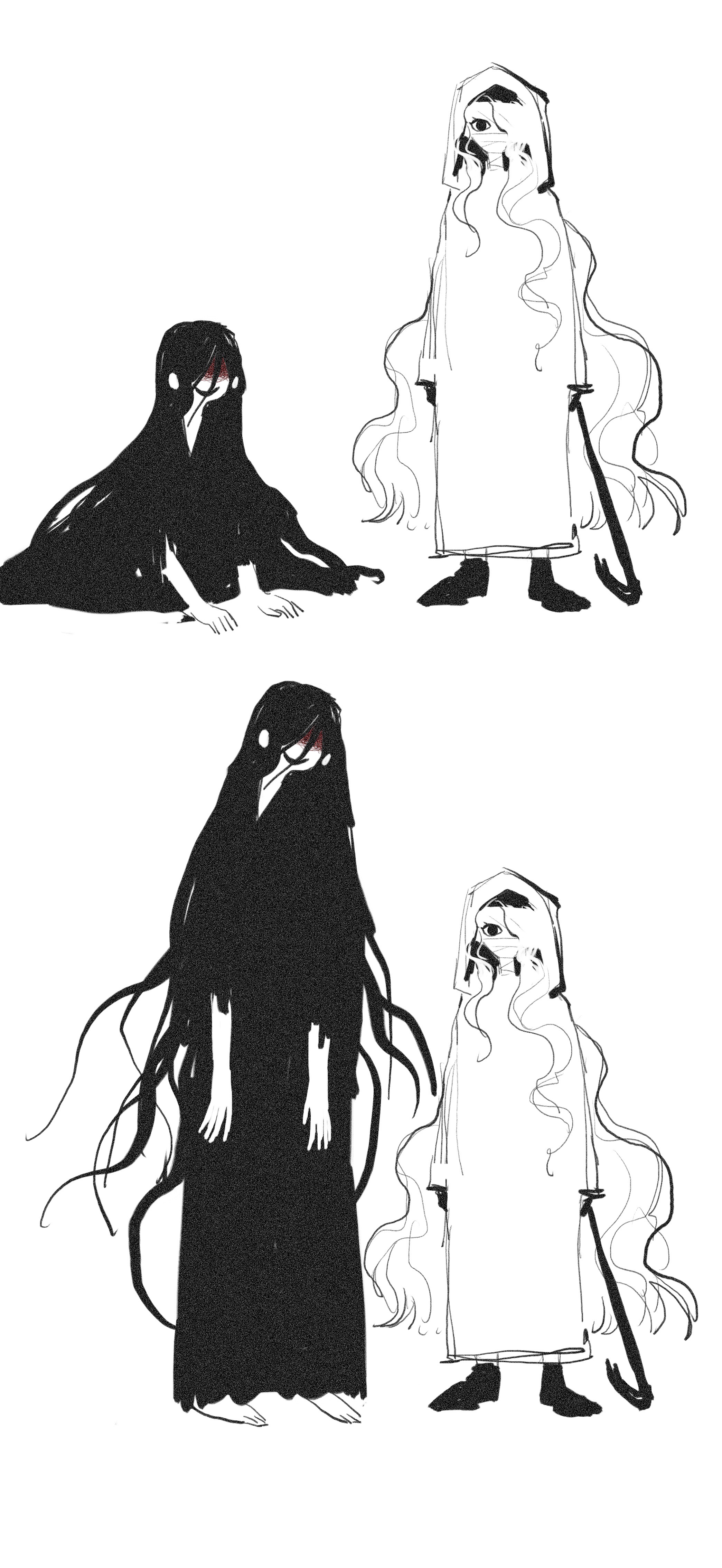 1boy 1girl absurdres bandages_over_mouth black_eyes black_hair black_kimono blood blood_on_face chinese_commentary commentary_request crowbar full_body adashino_adami highres holding holding_crowbar homicipher japanese_clothes kimono long_hair looking_at_viewer mr._crawling pingpingmeiko18447 raincoat simple_background sitting standing very_long_hair white_background white_hair white_raincoat