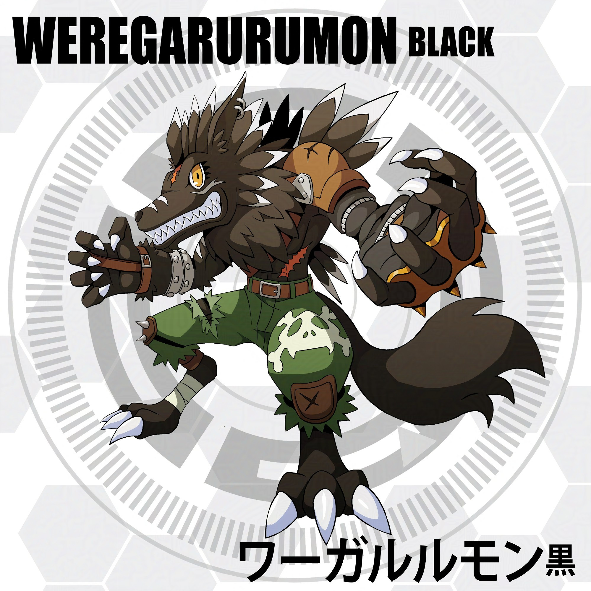 belt circle claws d_sandy digimon digimon_(creature) digimon_frontier highres skull solo tail weregarurumon_(black)