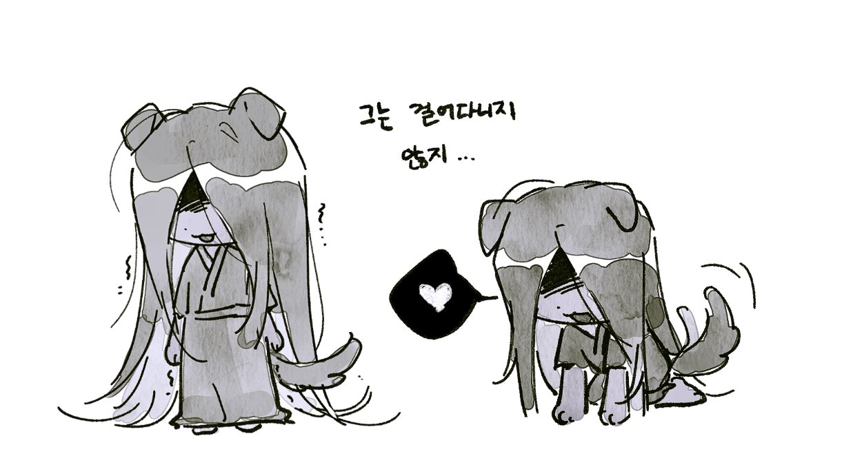 1boy animal_ears black_hair black_kimono chibi dog_boy dog_ears dog_tail full_body homicipher japanese_clothes jit1244 kemonomimi_mode kimono korean_text mr._crawling multiple_views simple_background tail tail_wagging translation_request white_background