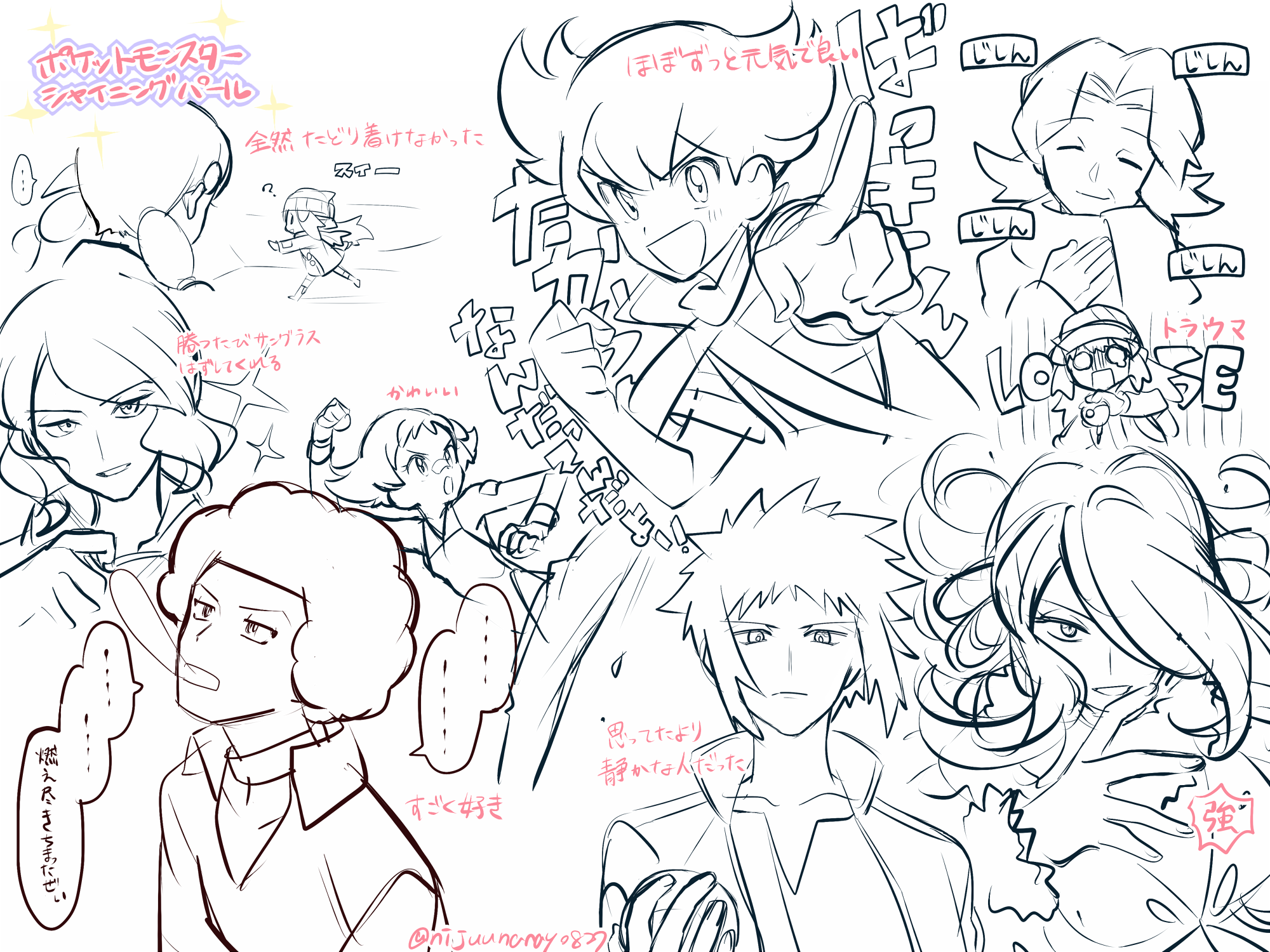 ... 4boys 5girls :d :o ? afro arm_up ball bare_shoulders barry_(pokemon) beanie bertha_(pokemon) braid breasts candice_(pokemon) character_request chibi clenched_hand closed_eyes closed_mouth collarbone cynthia_(pokemon) dawn_(pokemon) flint_(pokemon) forehead giving_up_the_ghost hair_between_eyes hair_over_one_eye hat highres holding holding_ball jacket long_hair low_twintails lucian_(pokemon) maylene_(pokemon) medium_breasts monochrome multiple_boys multiple_girls ninahachi nintendo open_clothes open_jacket open_mouth parted_bangs pointing pointing_at_viewer poke_ball poke_ball_(basic) pokemon pokemon_bdsp scarf short_hair simple_background smile sparkle spoken_ellipsis translation_request twin_braids twintails v-shaped_eyebrows very_long_hair volkner_(pokemon) white_background