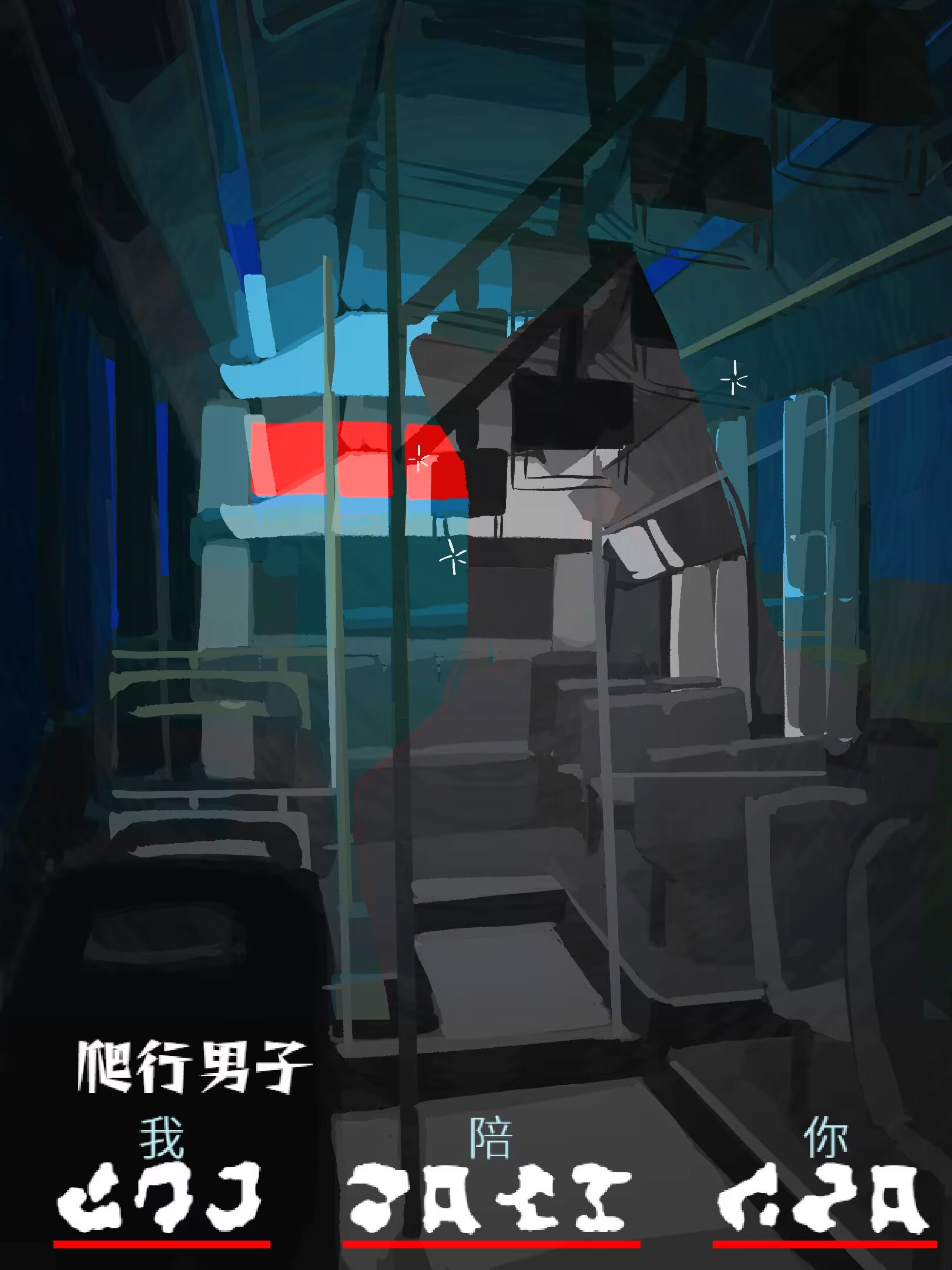 bilingual_text bus_interior chinese_commentary chinese_text commentary_request fake_screenshot highres homicipher homicipher_text mixed-language_text mr._crawling no_lineart procreate_(medium) shiwen50844 silhouette translation_request