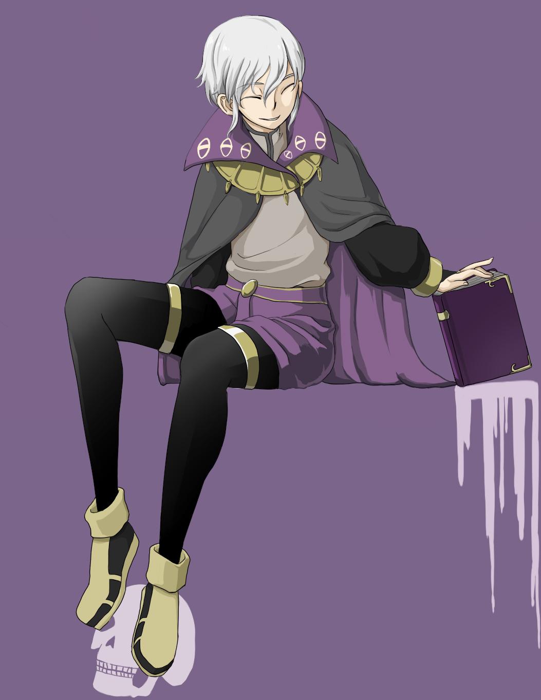 1boy ^_^ black_bridal_gauntlets bridal_gauntlets cape closed_eyes fire_emblem fire_emblem_awakening henry_(fire_emblem) highres long_sleeves male_focus mystical_high_collar nintendo setsu_hu short_hair smile white_hair wizard