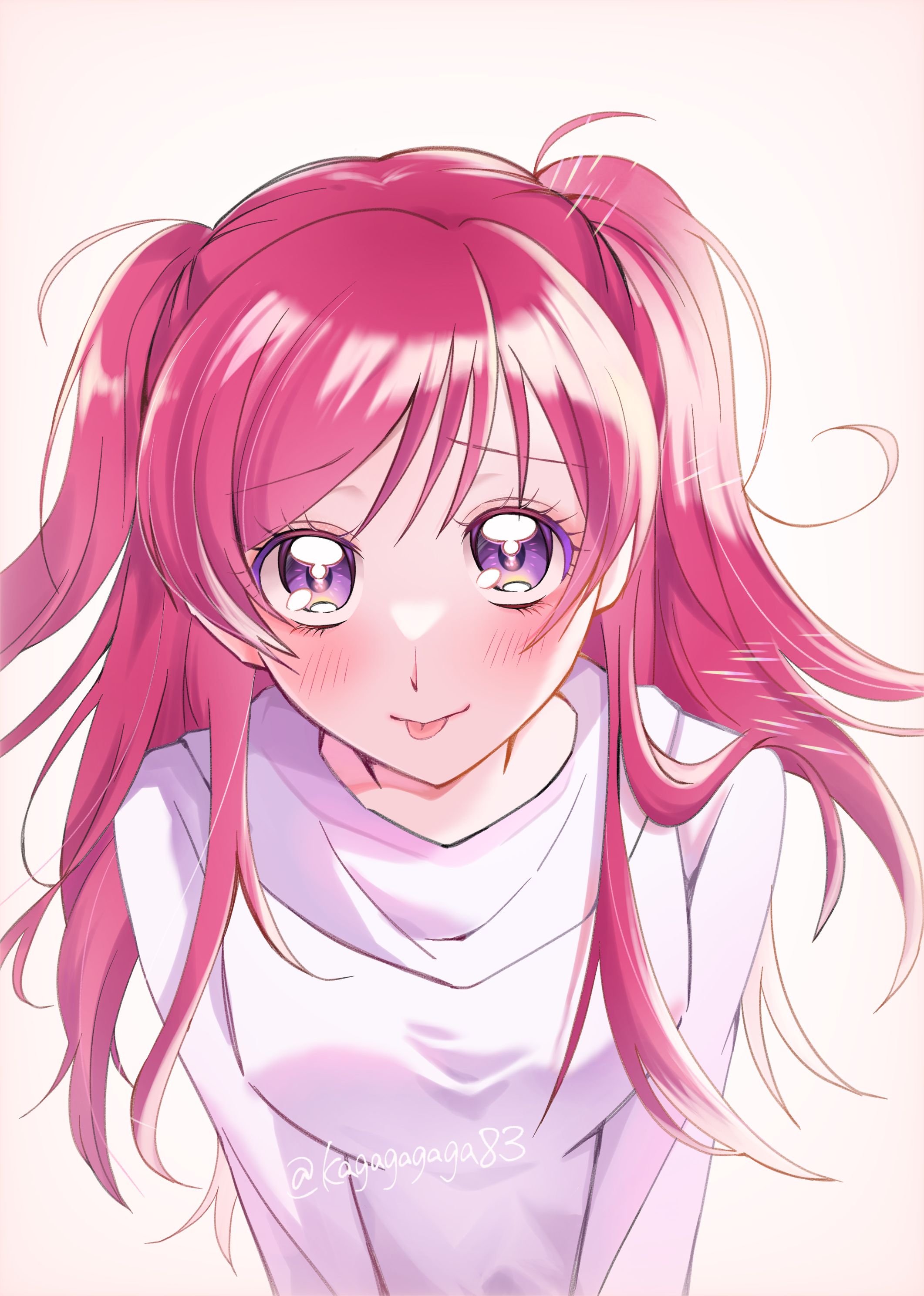 1girl absurdres blush highres hood hoodie kagagagaga83 kibou_no_chikara_otona_precure_'23 long_sleeves medium_hair pink_eyes pink_hair precure solo tongue tongue_out twitter_username two_side_up upper_body white_hoodie yes!_precure_5 yes!_precure_5_gogo! yumehara_nozomi