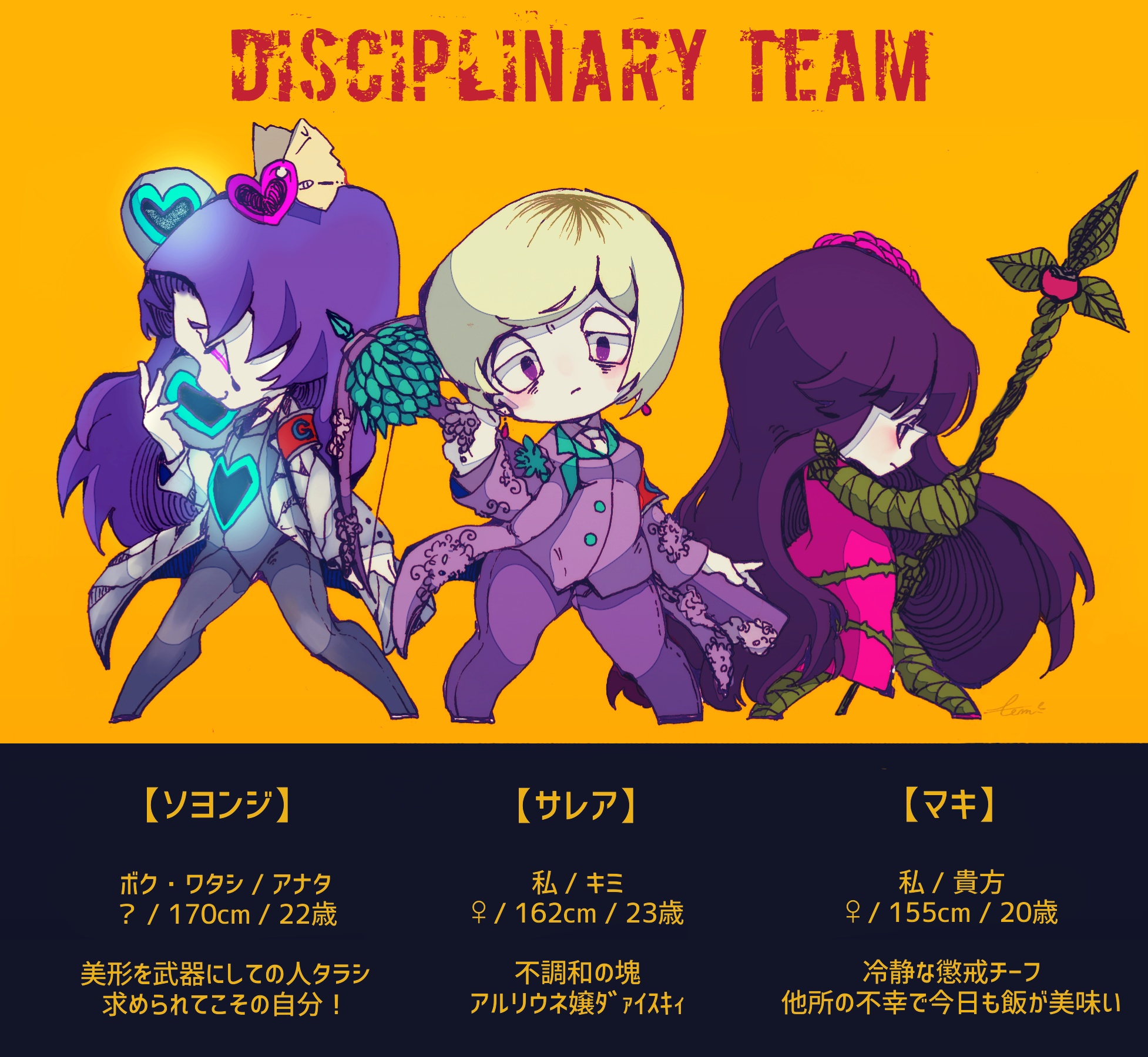 1other 2girls :3 ? apple armband bags_under_eyes black_background black_footwear black_necktie blonde_hair blunt_bangs bob_cut bow_(weapon) breasts buttons character_name chibi closed_mouth coat collared_coat collared_shirt collared_vest commentary_request crossbow determined e.g.o_(project_moon) employee_(project_moon) english_text expressionless facial_mark faint_aroma_(e.g.o) fighting_stance floral_print flower food fruit gloves glowing glowing_eyes green_gloves green_pants green_shirt green_stem_(e.g.o) grey_coat grey_pants grey_vest hair_flower hair_ornament half-closed_eyes happy heart heart_hair_ornament heart_print highres holding holding_behind_back holding_crossbow holding_orb holding_staff holding_weapon holding_weapon_behind_back lapels light_blush light_frown lobotomy_corporation long_hair long_sleeves marking_on_cheek mixed-language_text multiple_girls necktie notched_lapels nugget_(project_moon) open_clothes open_coat orange_background pants pink_coat pink_flower pink_shirt pink_vest plant project_moon purple_eyes purple_pants red_armband red_coat shirt shoes short_hair signature sleeveless sleeveless_coat sleeves_past_wrists sound_of_a_star_(e.g.o) staff standing teardrop_facial_mark temari_momiji thorns translation_request two-tone_background venus_symbol very_long_hair vest vines weapon white_necktie white_shirt