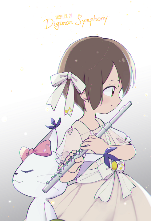 animal_ears cat cat_ears closed_eyes digimon digimon_(creature) digimon_adventure:_(2020) flute gloves holy_ring instrument tail tailmon yagami_hikari