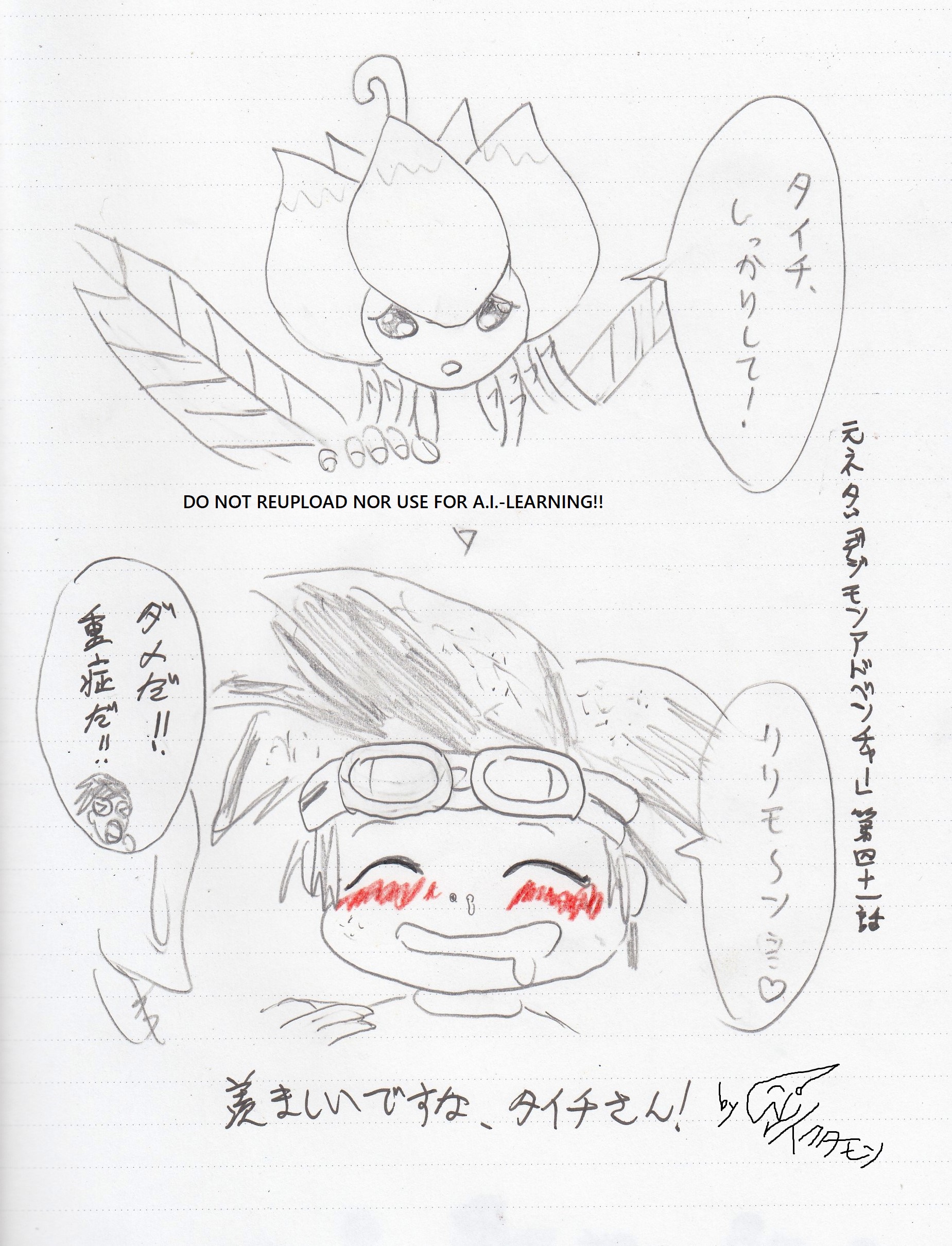 absurdres blush digimon digimon_(creature) fairy flower highres kido_jo lilimon monster_girl petals plant_girl spot_color traditional_media translation_request yagami_hikari