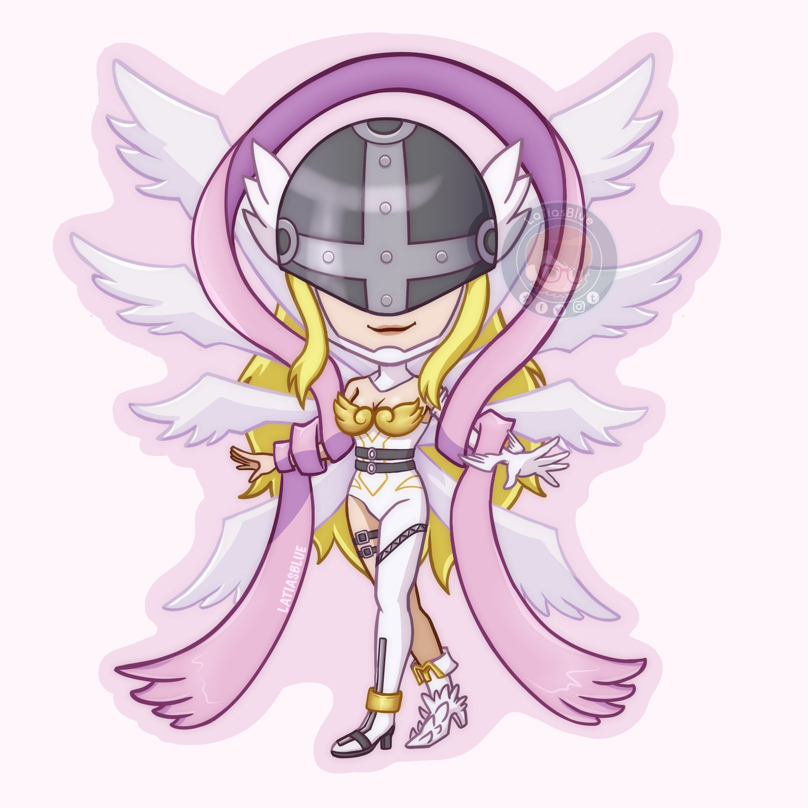 angel angel_girl angewomon digimon digimon_(creature) head_wings highres long_hair mask wings