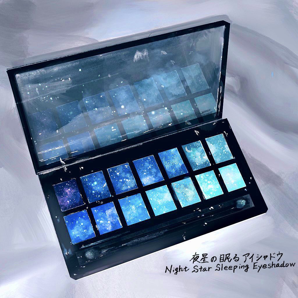 bilingual_text cosmetics grey_background makeup_brush makeup_palette mirror mixed-language_text no_humans object_focus original still_life yasuta_kaii32i