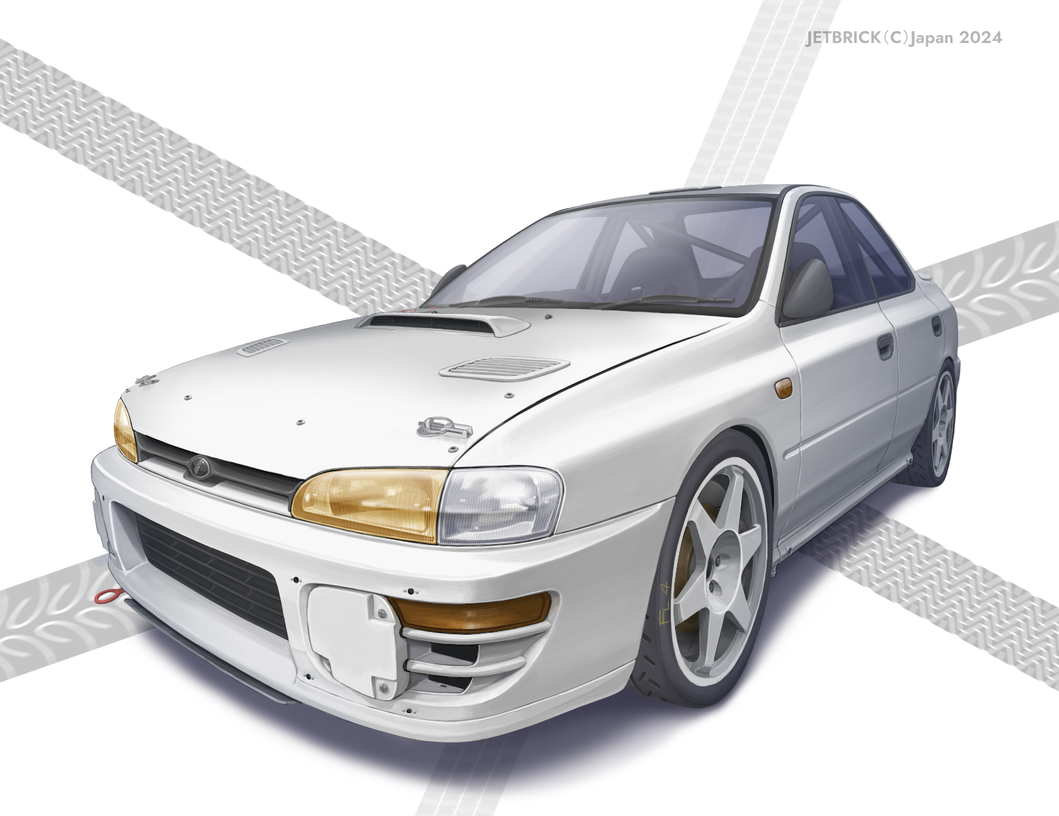2024 artist_name car commentary_request jettoburikku motor_vehicle no_humans original skid_mark sports_car subaru_(brand) subaru_impreza vehicle_focus watermark white_car