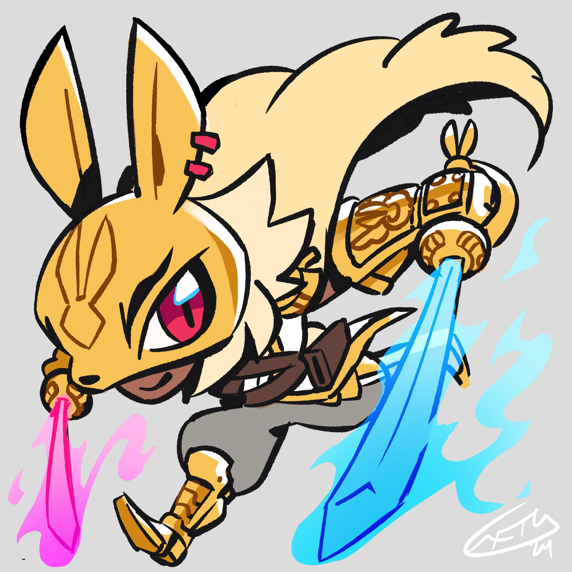 1boy dark-skinned_male dark_skin diarbbitmon digimon digimon_(creature) dual_wielding highres holding male_focus mask red_eyes solo