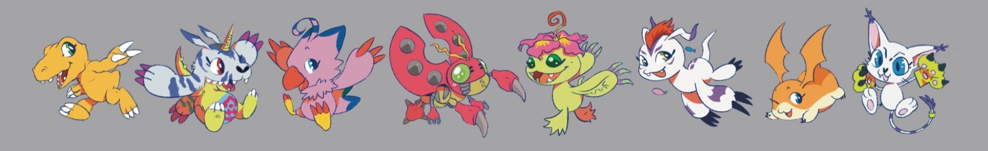 agumon bird bug cat digimon digimon_(creature) digimon_adventure:_(2020) gabumon gomamon highres palmon patamon petals piyomon tailmon tentomon wings
