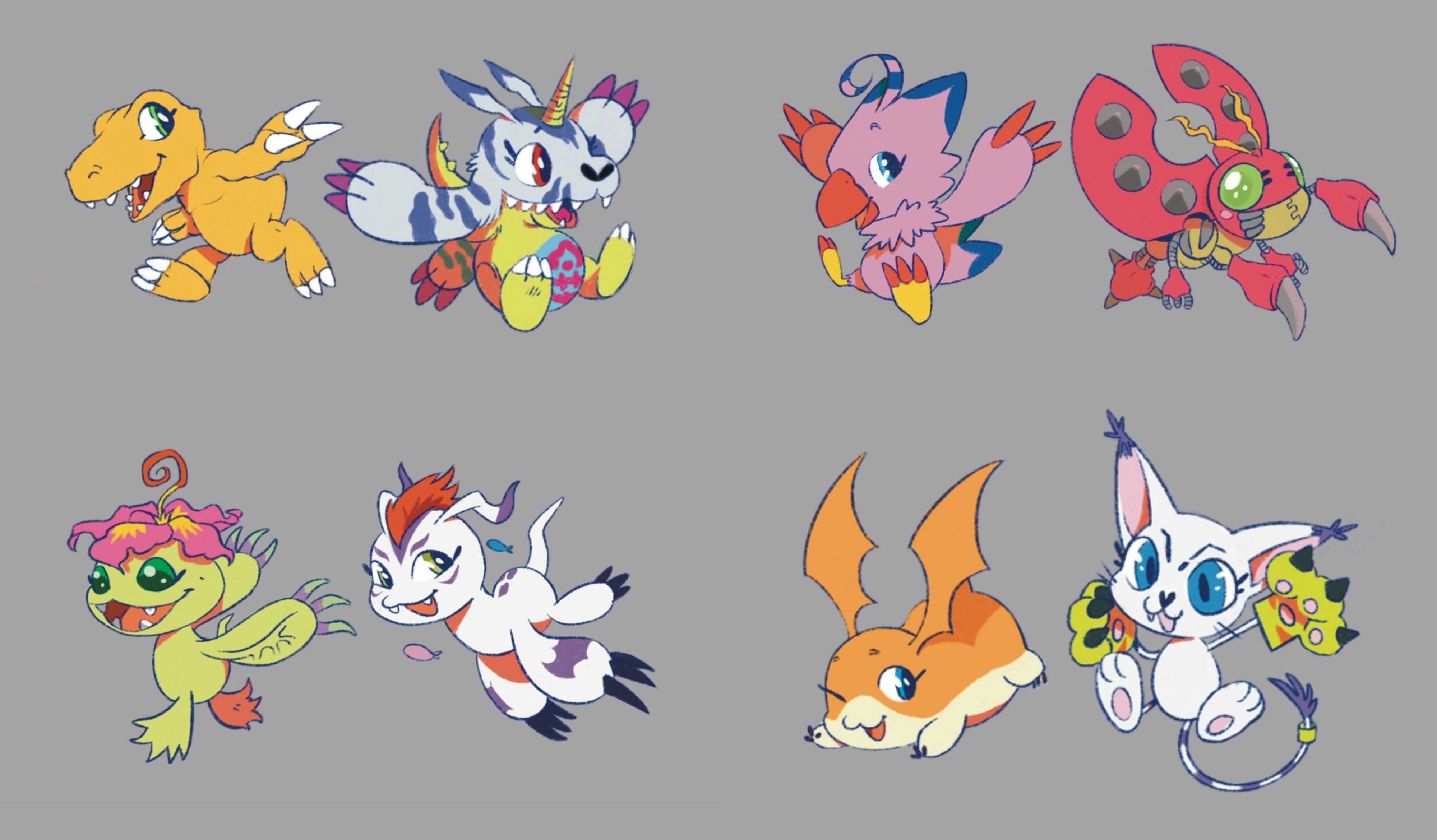 absurdres agumon bird bug cat digimon digimon_(creature) digimon_adventure:_(2020) gabumon gomamon highres palmon patamon petals piyomon tailmon tentomon wings