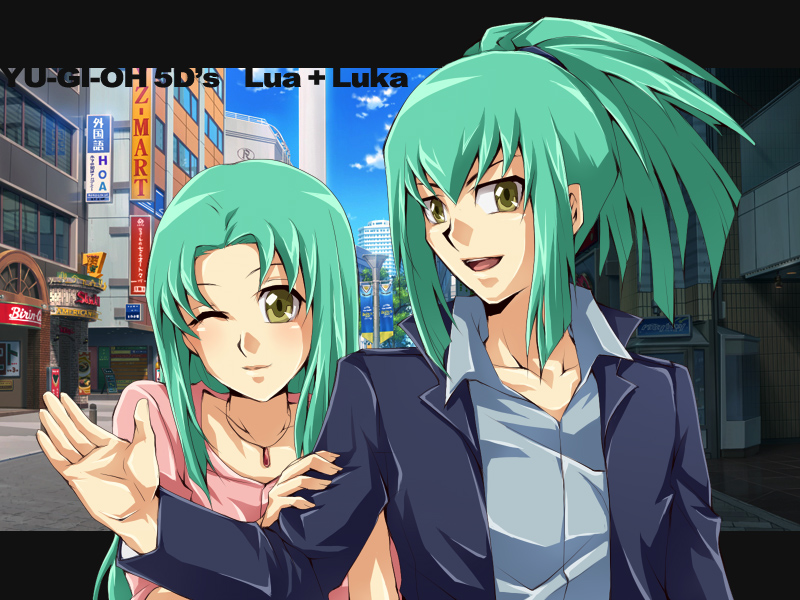 1boy 1girl brother_and_sister green_hair lua_(yu-gi-oh!) luca_(yu-gi-oh!) siblings twins yoru_(77957792) yu-gi-oh! yu-gi-oh!_5d's