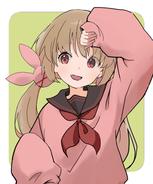 1girl brown_hair fang hair_ornament long_sleeves low_twintails natori_sana natori_sana_(school_uniform) neckerchief open_mouth rabbit_hair_ornament red_eyes red_neckerchief sana_channel school_uniform serafuku solo twintails virtual_youtuber youasato