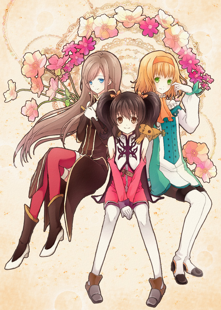 00s 3girls anise_tatlin arm_warmers ascot belt black_hair black_legwear blonde_hair blue_eyes boots bow brown_arm_warmers brown_eyes brown_hair collar doll flower full_body gloves green_eyes hair_flip hair_ribbon hairband hira_shinki lace long_hair multiple_girls natalia_luzu_kimlasca_lanvaldear orange_ascot pantyhose red_legwear ribbon shoes short_hair sidelocks sitting skirt smile taira_shinki tales_of_(series) tales_of_the_abyss tear_grants thigh_boots thighhighs tokunaga_(tales) twintails white_gloves white_legwear