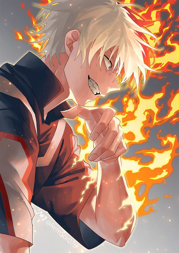 1boy blue_eyes boku_no_hero_academia clenched_teeth commentary_request fire floating_hair high_collar male_focus multicolored_hair profile raru_(remsor076) red_hair short_sleeves solo teeth todoroki_shoto twitter_username two-tone_hair upper_body white_hair