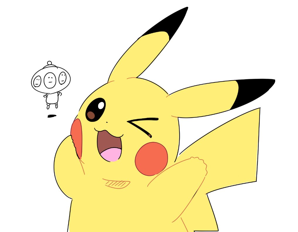 animal_ears colored_skin dot_nose gen_1_pokemon happy lai_(pixiv1814979) nintendo one_eye_closed open_mouth pikachu pokemon pokemon_(creature) smile tail white_background yellow_skin