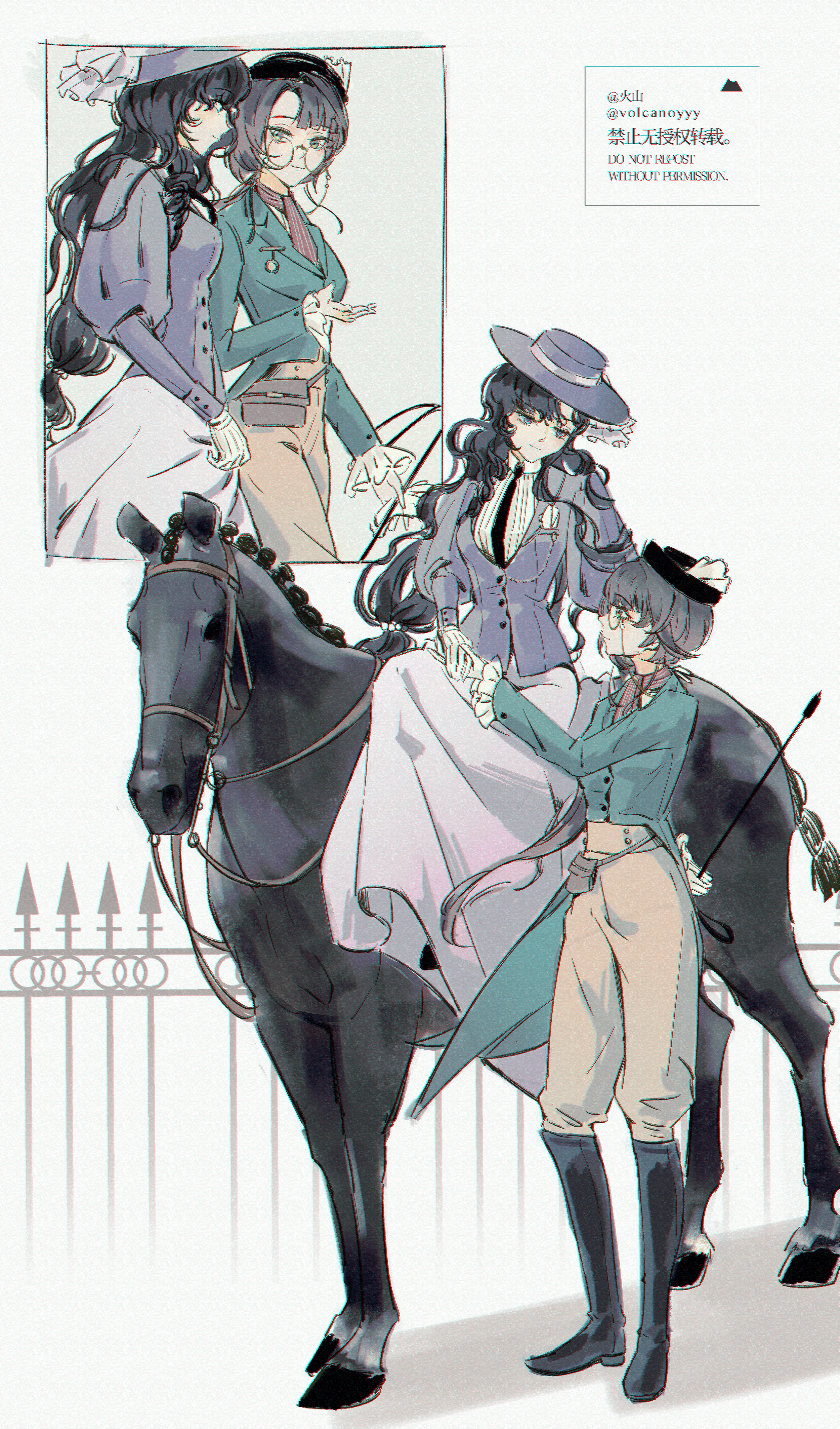 &{ID:11257566 CreatedAt:Mon Jan 06 07:00:50 -0600 2025 Score:1 Width:2500 Height:4250 MD5:23c6d25b8cfb421b77c313da9782a9b3 Directory:23/c6 Image:23c6d25b8cfb421b77c313da9782a9b3.png Rating:general Source:https://volcanoyyy.lofter.com/post/4ccb8e29_2bd83d484 Change:1738898500 Owner:danbooru CreatorID:6498 ParentID:0 Sample:1 PreviewHeight:350 PreviewWidth:205 Tags:2girls absurdres artist_name ascot black_footwear black_hair black_hat black_necktie boots bridle brown_ascot brown_hair brown_pants dress eyewear_strap full_body glasses green_eyes green_jacket hat highres holding holding_hands holding_riding_crop horse horseback_riding isolde_(reverse:1999) jacket kakania_(reverse:1999) knee_boots long_dress long_hair long_sleeves looking_at_another low_ponytail multiple_girls multiple_views necktie pants pants_tucked_in ponytail profile puffy_long_sleeves puffy_sleeves purple_eyes purple_hat purple_jacket reins reverse:1999 riding riding_crop round_eyewear shirt sidesaddle skirt standing very_long_hair volcanoyyy watermark white_background white_shirt white_skirt Title: HasNotes:false HasComments:false FileURL:https://img2.gelbooru.com/images/23/c6/23c6d25b8cfb421b77c313da9782a9b3.png PreviewURL:https://gelbooru.com/thumbnails/23/c6/thumbnail_23c6d25b8cfb421b77c313da9782a9b3.jpg SampleURL:https://img2.gelbooru.com/samples/23/c6/sample_23c6d25b8cfb421b77c313da9782a9b3.jpg SampleHeight:1445 SampleWidth:850 Status:active PostLocked:0 HasChildren:false IsVideo:false DisplayDate:06.01.2025 07:00}