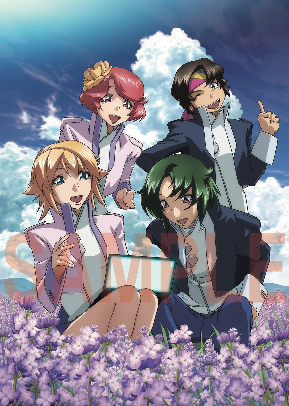 2boys 2girls blonde_hair brown_hair flower green_eyes green_hair hair_flower hair_ornament headband highres hirai_hisashi majestic_prince meadow multiple_boys multiple_girls official_art red_eyes red_hair short_hair